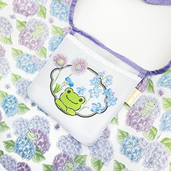 商品説明 | フラワーギフトで人気の日比谷花壇と、かえるのピクルスのコラボのエコバッグです!フローリストによるフラワーイラストが施され、アジサイに紛れたピクルスが♪収納ポケット付きで折りたたみOK◎軽くて持ち歩きにも便利です♪ |