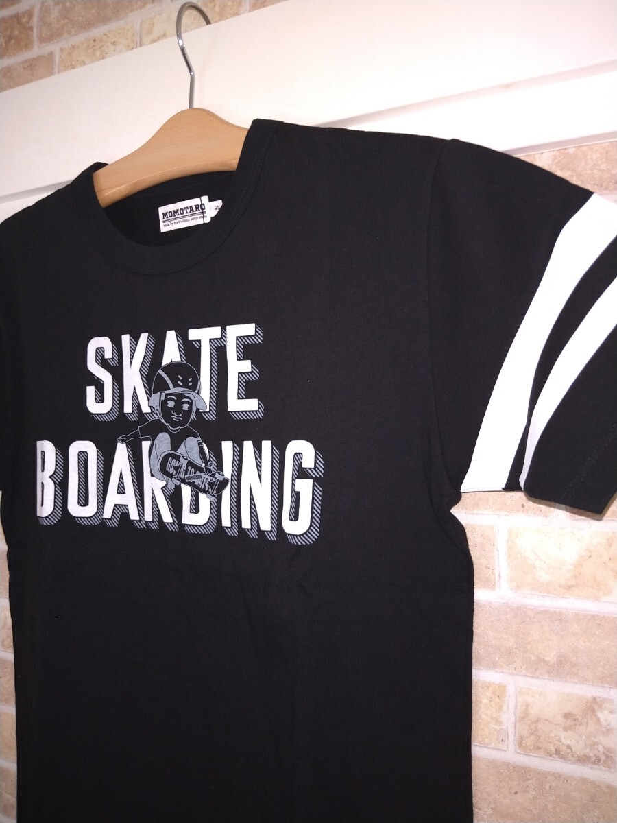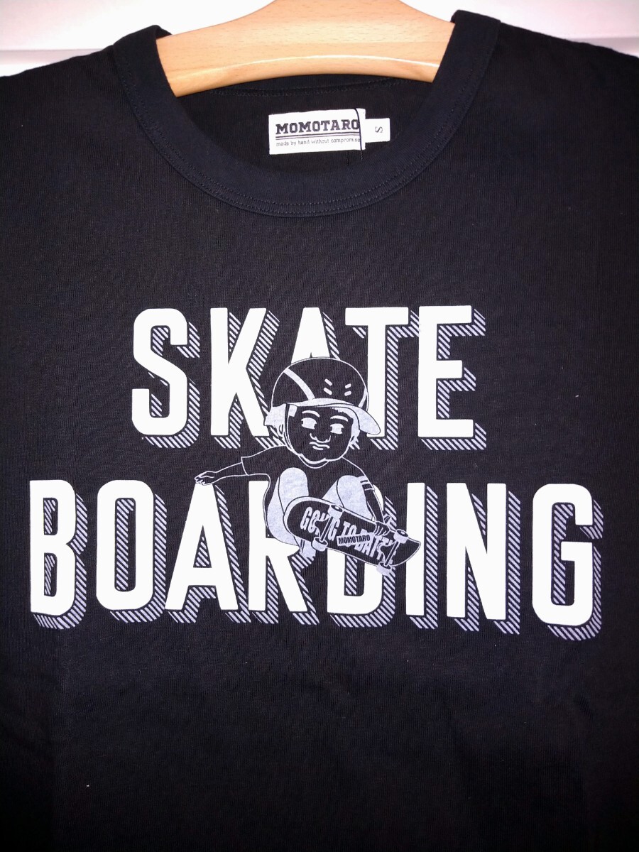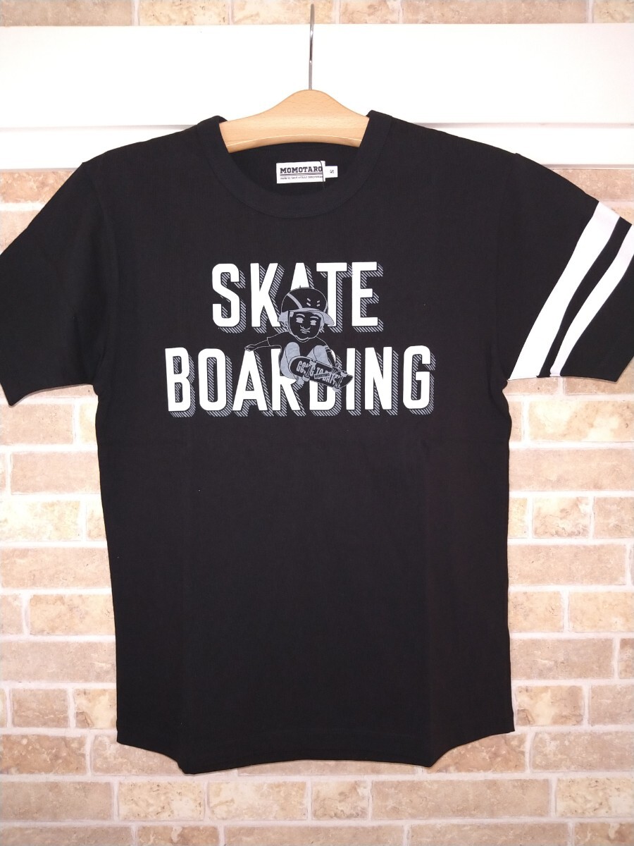 MOMOTARO JEANS 桃太郎ジーンズ ジンバブエコットン 半袖Tシャツ [07-123] S 黒② スケボー柄 スケートボード 天竺 日本製 岡山児島 出陣