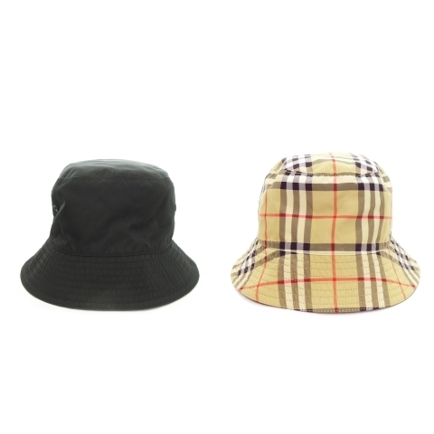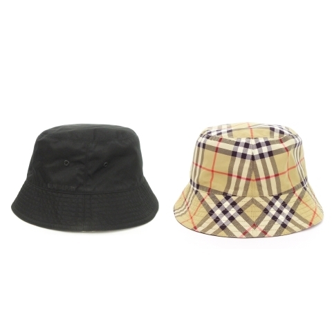 バーバリー BURBERRY バケットハット リバーシブル 無地 ノバチェック ロゴ 黒 ブラック 茶 ブラウン /MN12 ■GY19 レディース