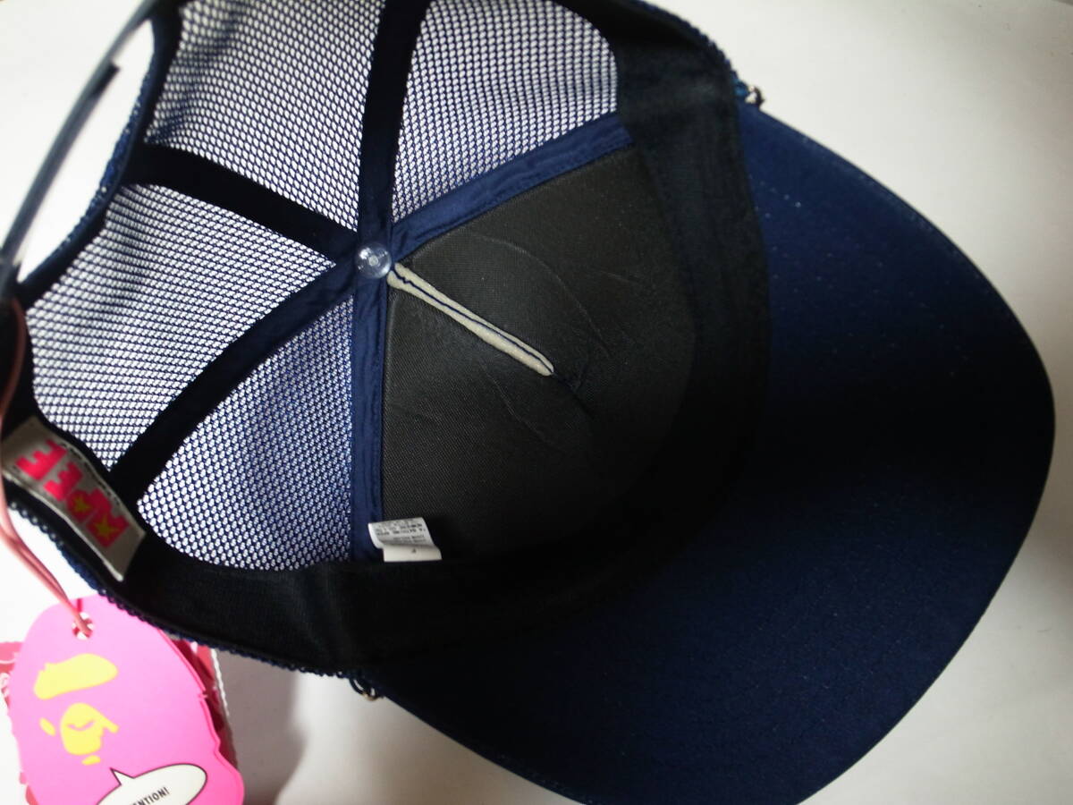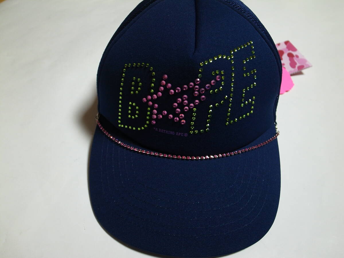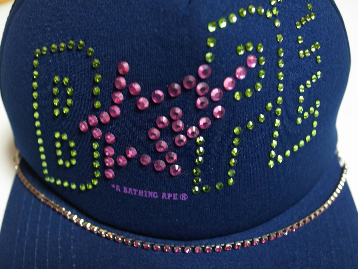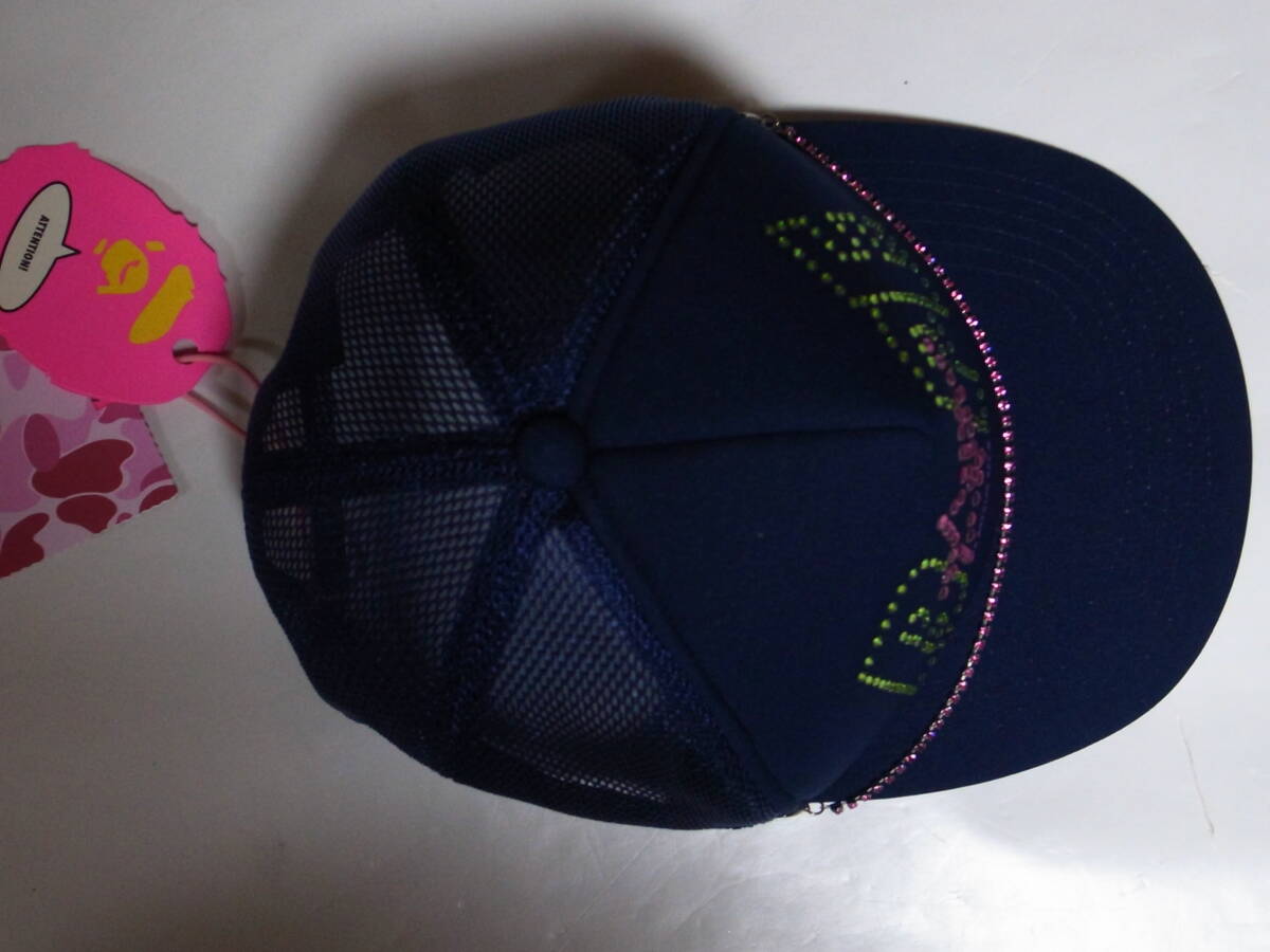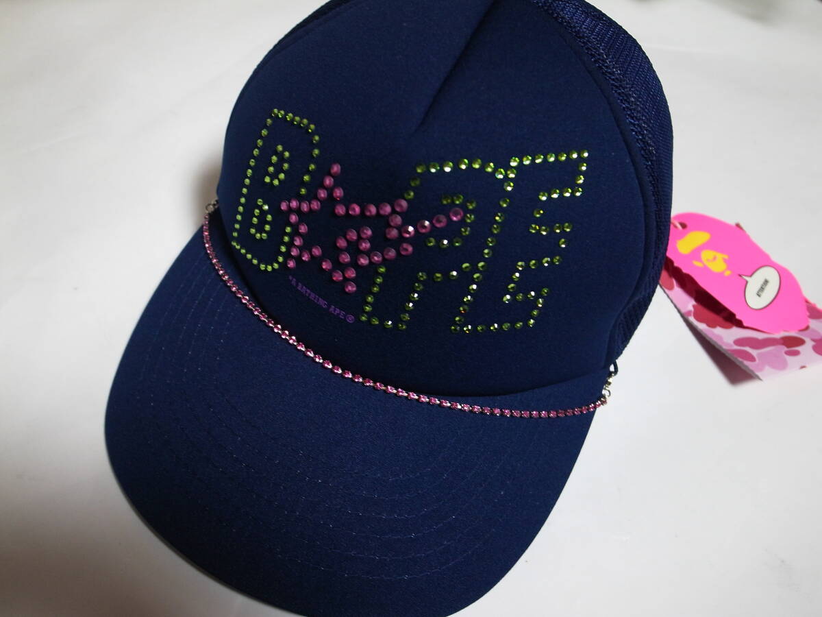 【送料無料】激レア・稀少★A BATHING APE エイプ★ラインストーン スワロフスキー メッシュ キャップ 帽子★ネイビー★日本製