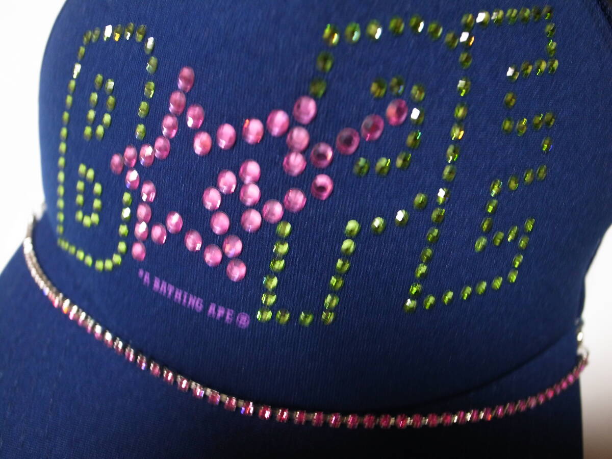 A BATHING APE ラインストーン スワロフスキー メッシュキャップ ネイビーです。