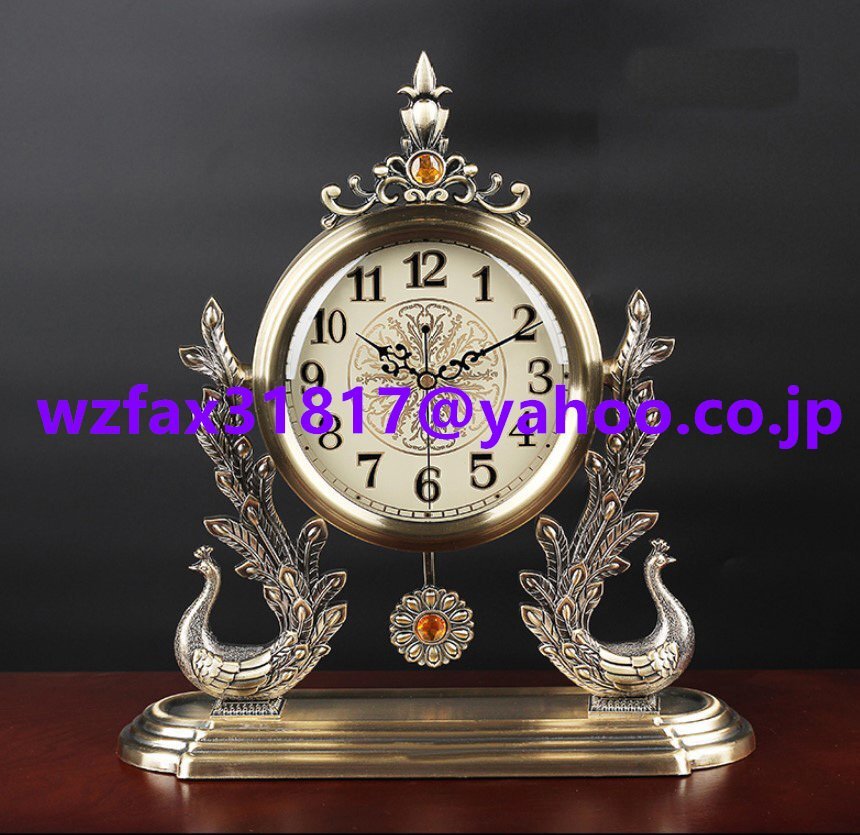 アンティーク調置き時計 クラシック ヨーロッパ 高級 金属 孔雀 クジャク くじゃく オブジェ