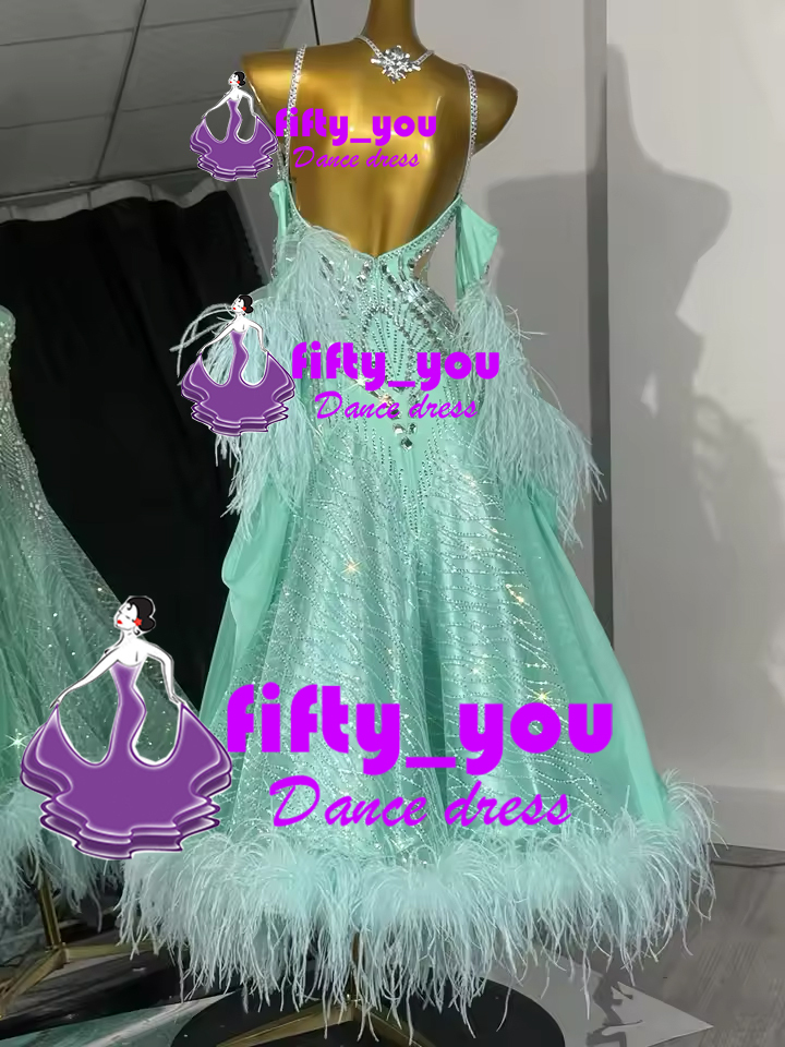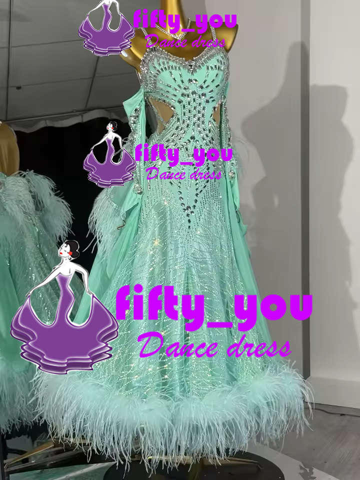 新品fifty_you 高級ドレス レディース社交ダンス衣装 サイズセミオーダー スタンダードドレス お洒落デザイン 可愛いスカート柄 緑色