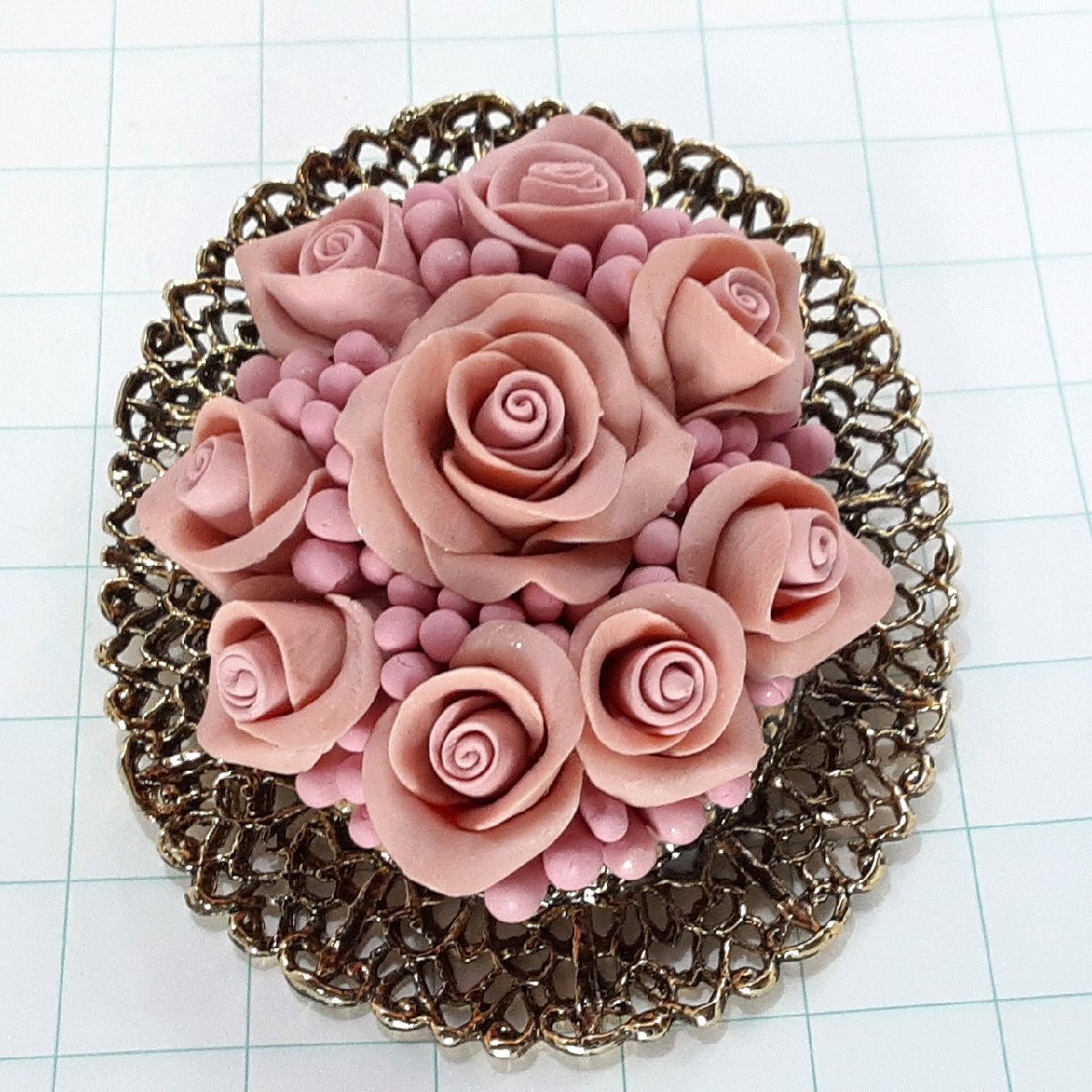 送料無料)ビンテージ☆ピンク薔薇モチーフ☆アンティーク ブローチ A30583