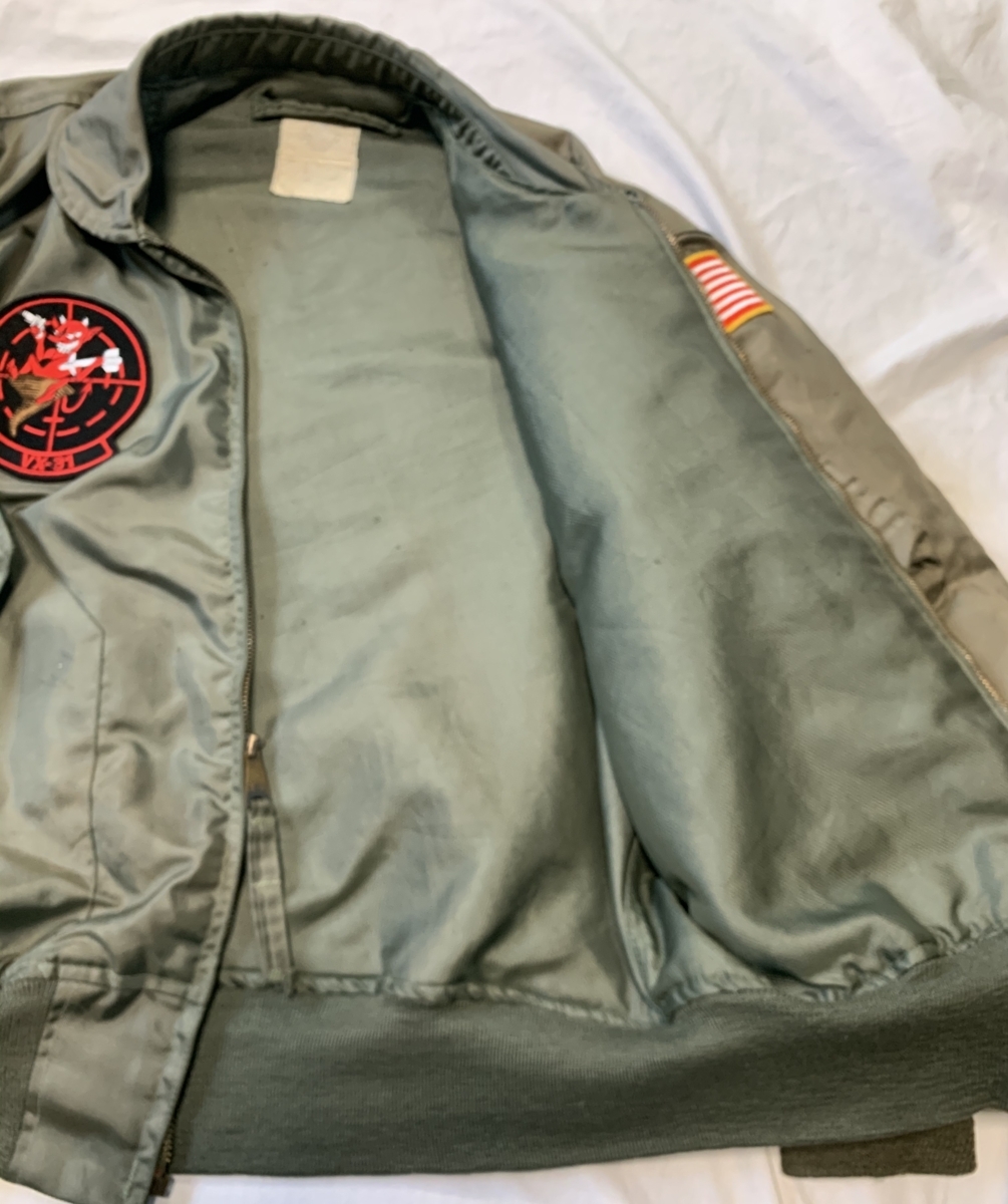 軍用品で実際にパイロットや航空搭乗員が使用したフライトジャケットをVX-31ダストデビル航空試験評価飛行部隊仕様にした物になりますので傷・擦れ・汚れ・皺・縫い糸解れ・階級章やパッチ外し跡の針孔・毛玉・色焼け・補修等があります。