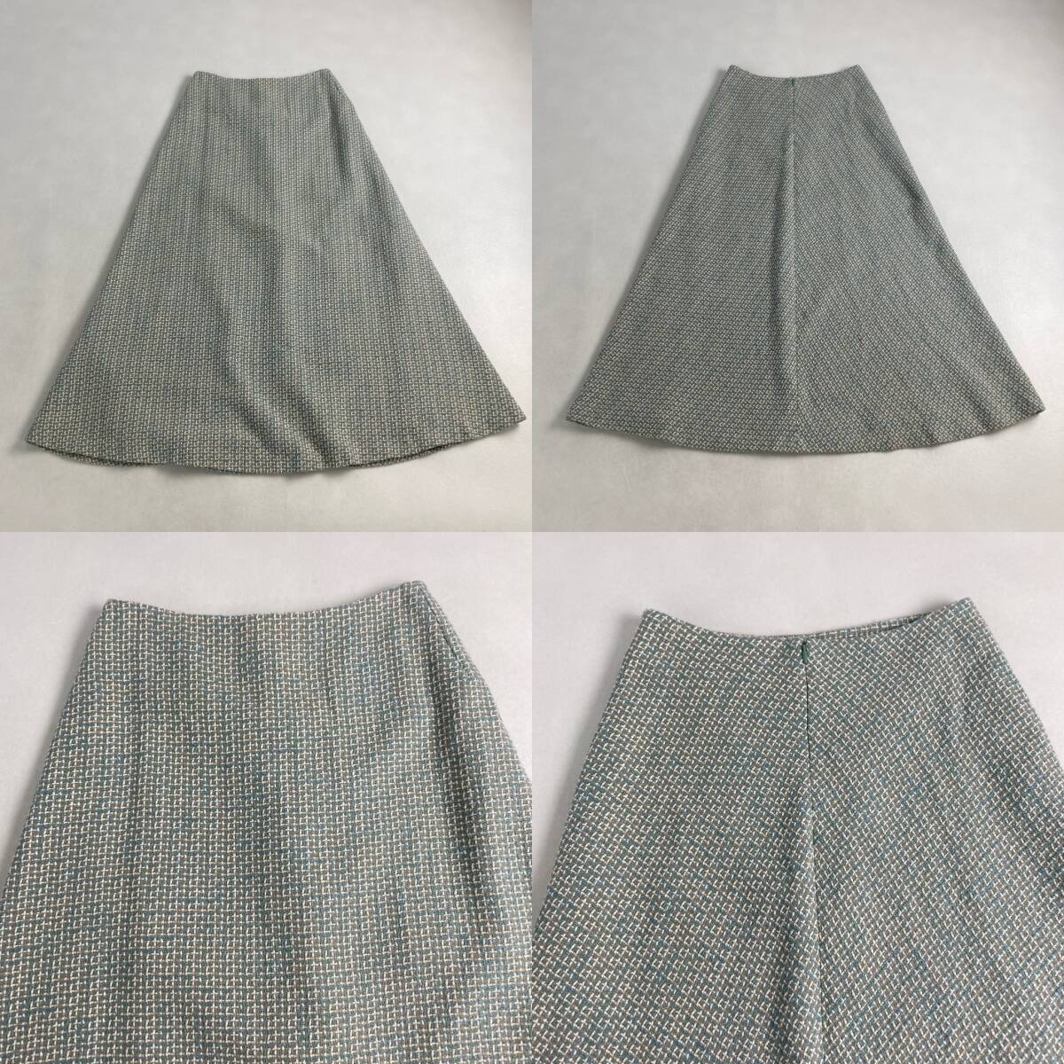 【ポイント】セットアップ ミックスツイード ロングスカート ライトグリーン M