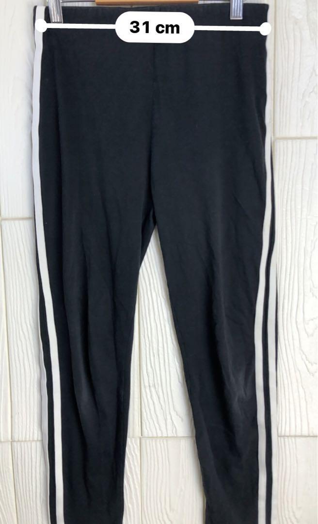 サイドにストライプが入った黒のレギンス。
