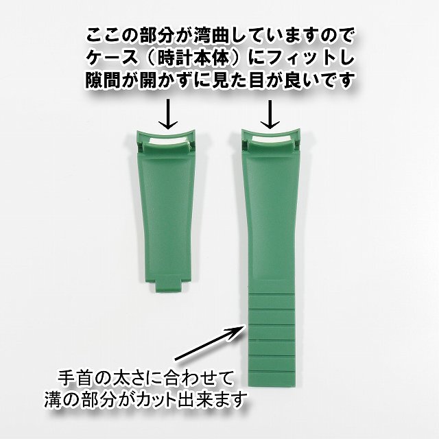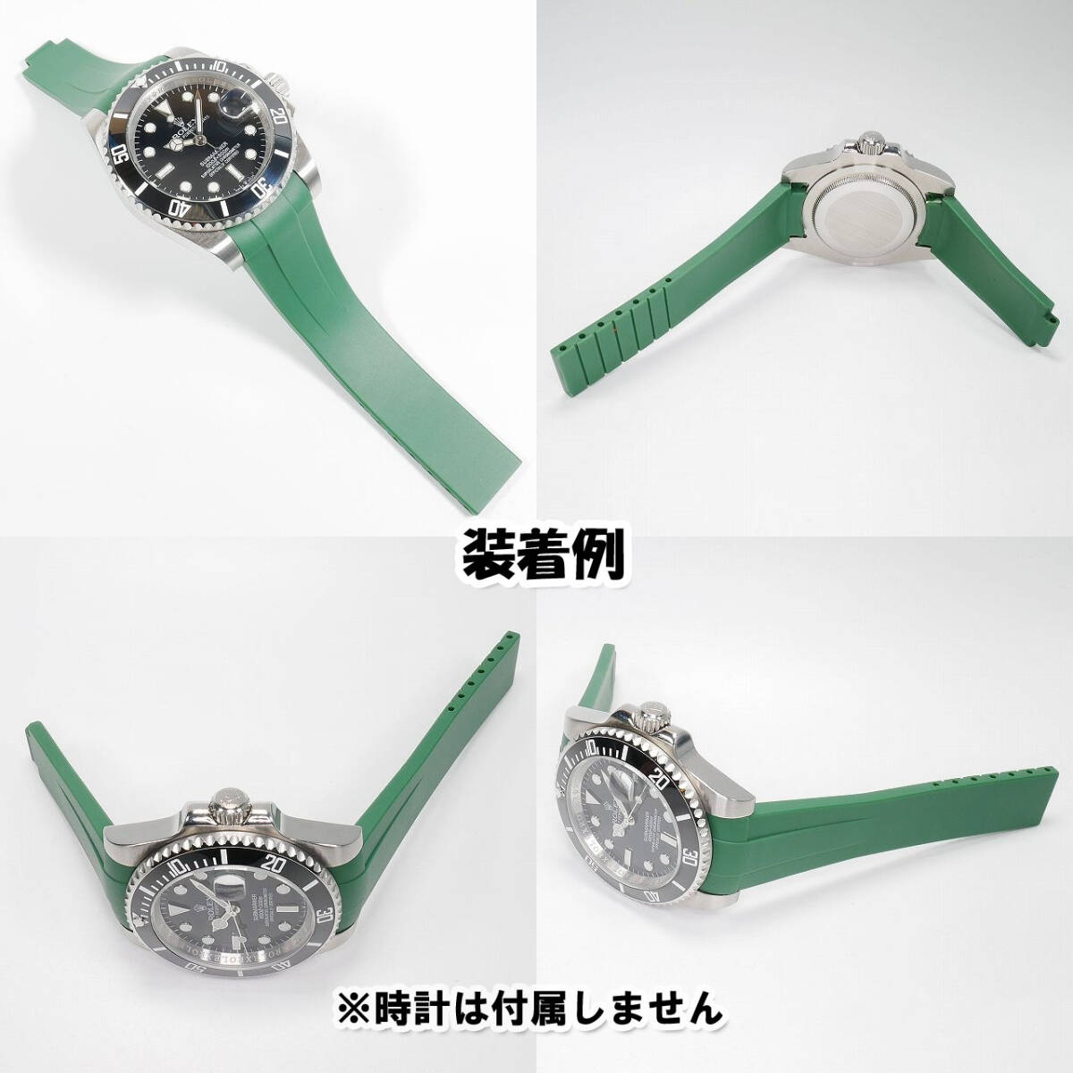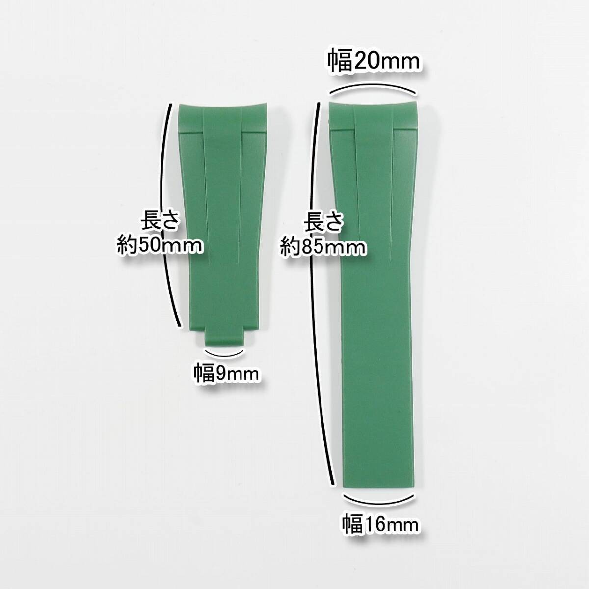 ロレックス用 互換ラバーベルト グリーン 20mm エンドカーブタイプ