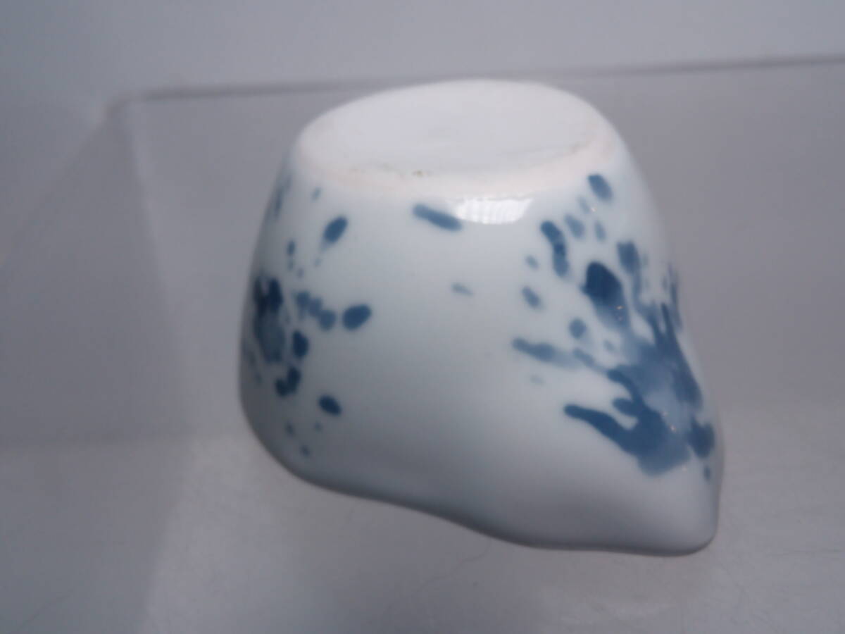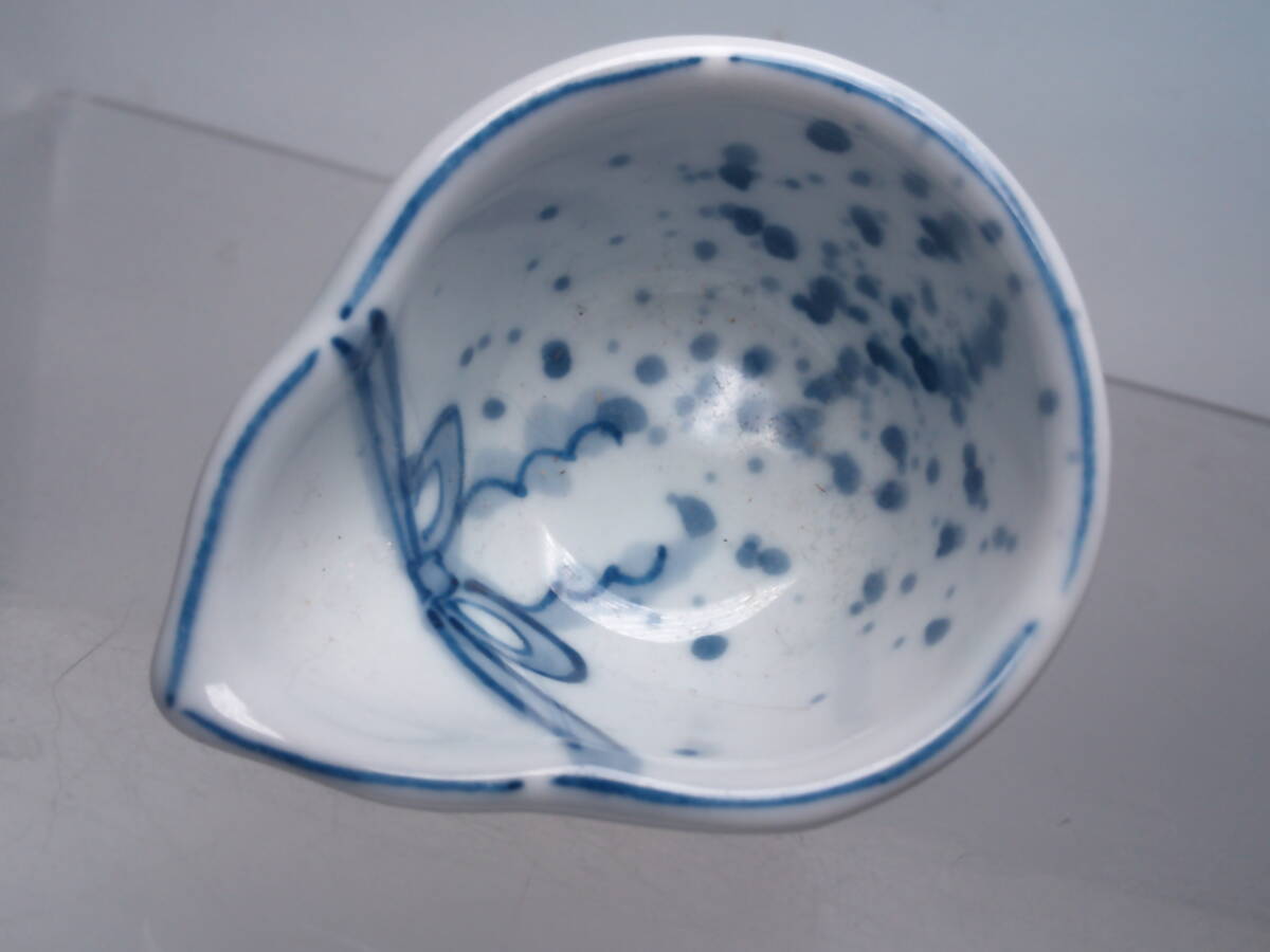 ☆お料理屋さんの器 染付吹墨 結び文 瓢箪形小向付 四客 珍味入れ/豆小鉢/懐石/割烹/日本料理