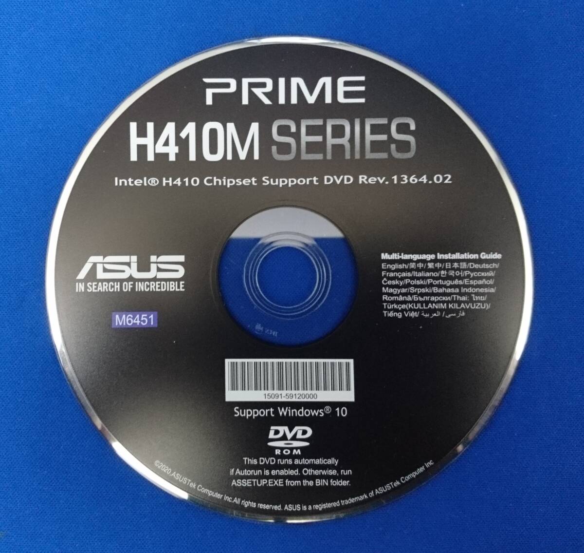 「ASUS PRIME H410Mシリーズ」用ドライバディスク 「PRIME H410M-A」の付属品