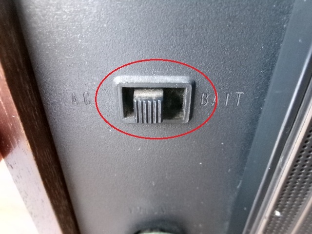 AM/FM視聴できますが、ACとBATTのスイッチの接触が悪いのかACの方に寄せると鳴らなくなります(BATT寄り、画像の辺りだと視聴できます)
