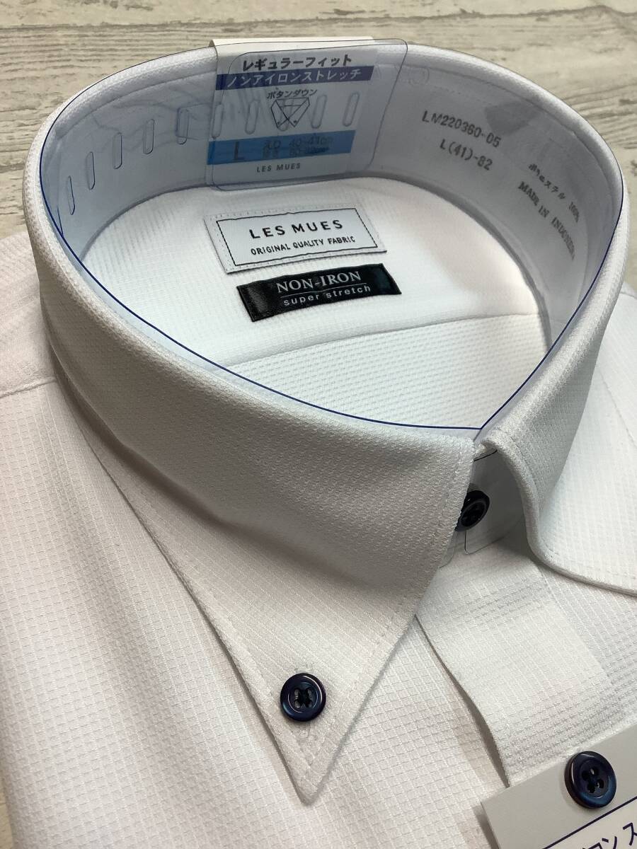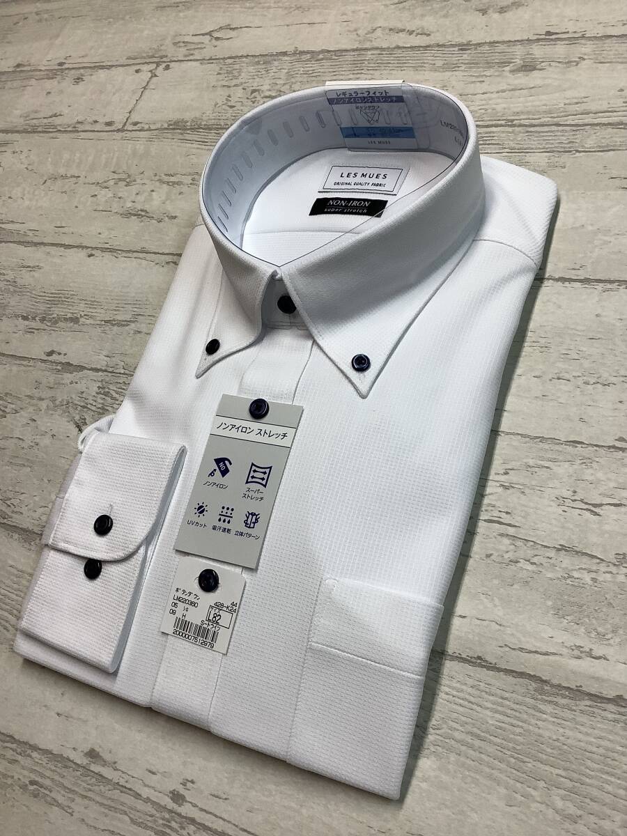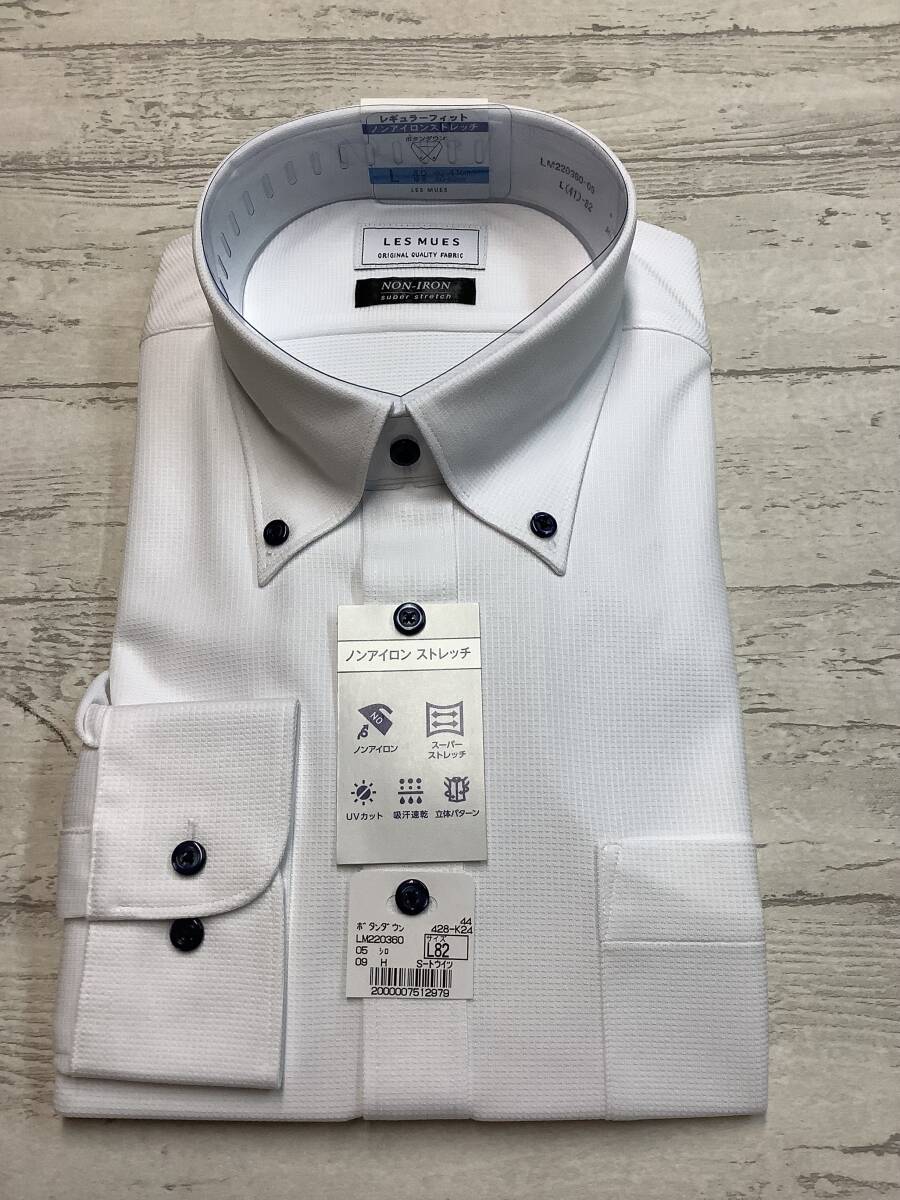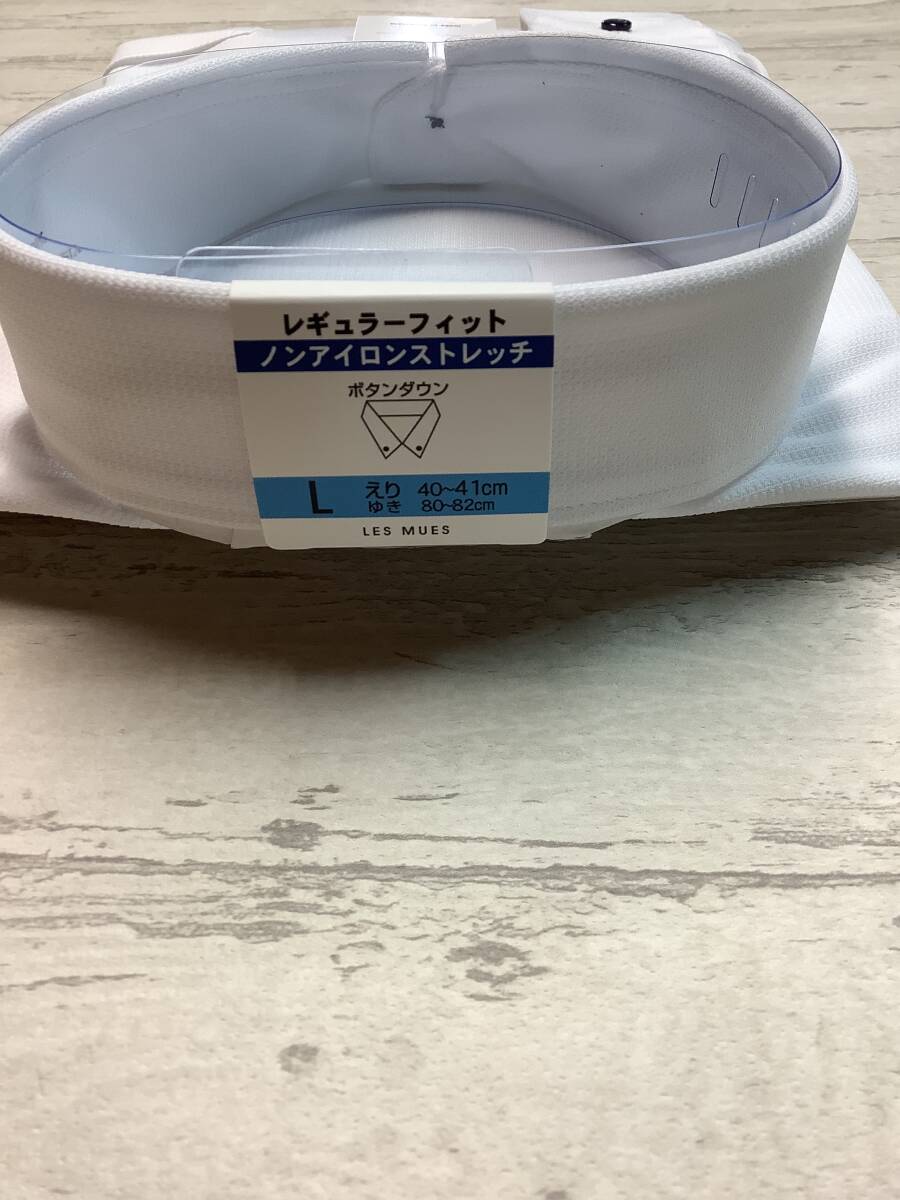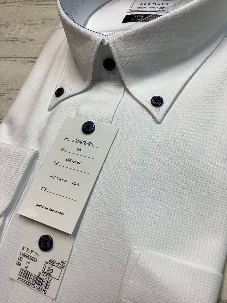 新品未使用★41-82 長袖Lサイズ  スーパーストレッチ ★ポリエステル100% ボタンダウン ★白ドビー柄
