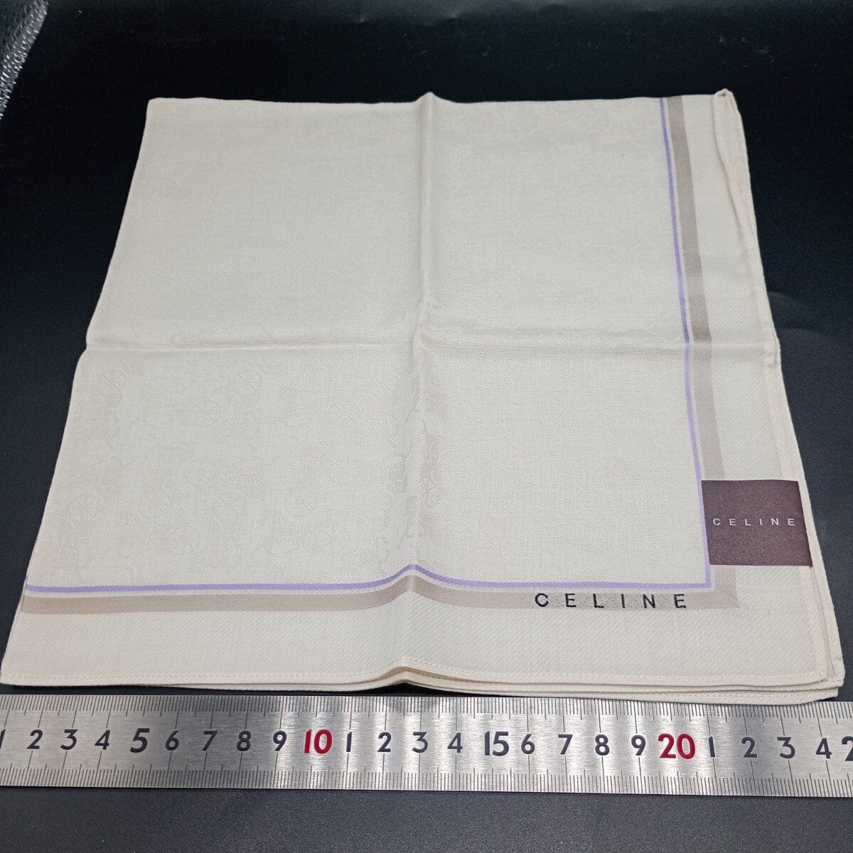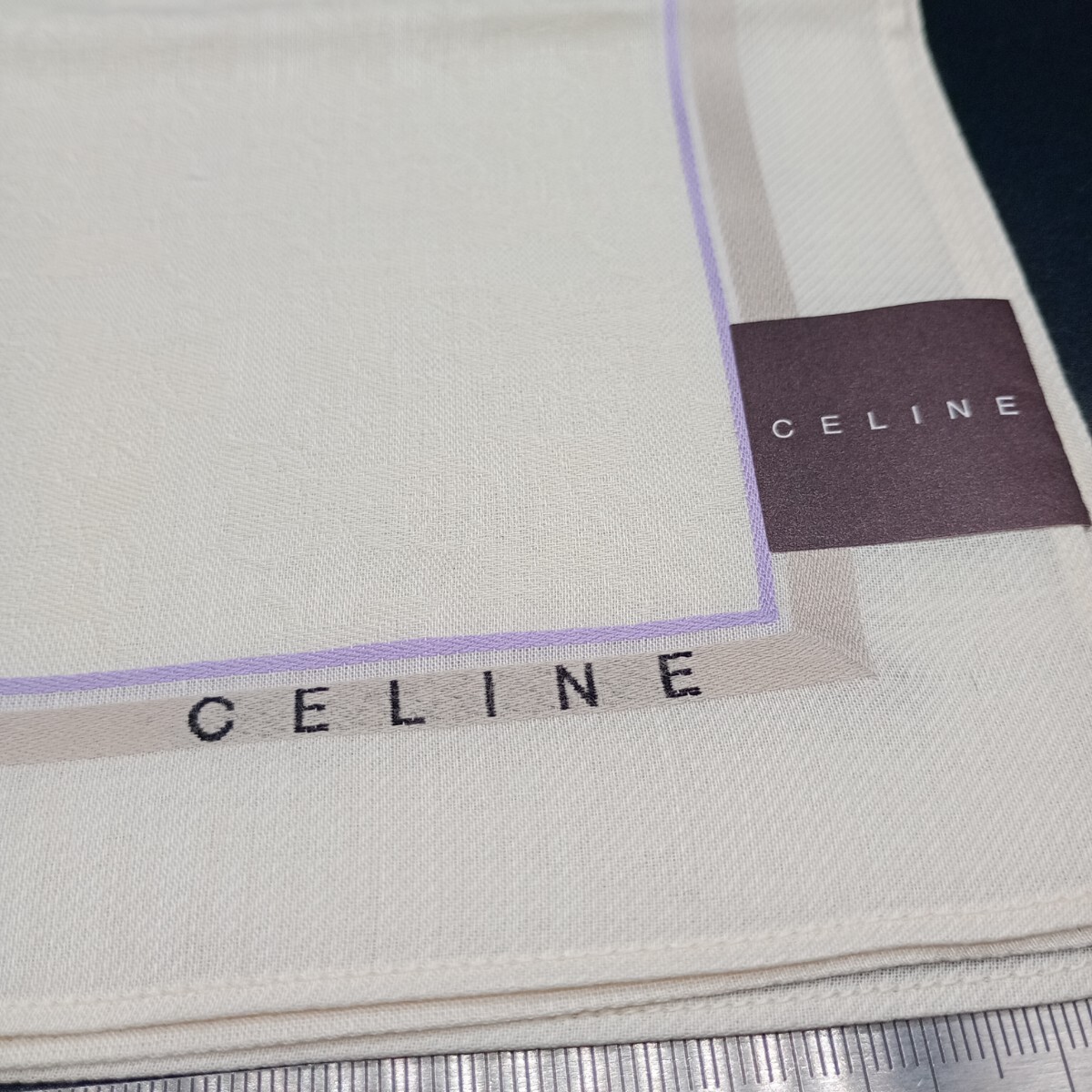 CELINE セリーヌ ハンカチ ライトベージュ パープル・グレー ライン   no.3020