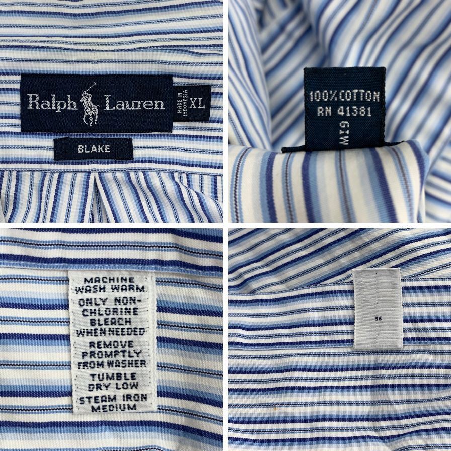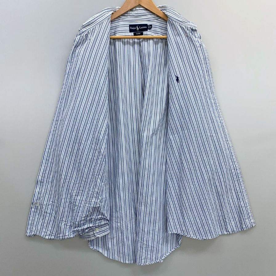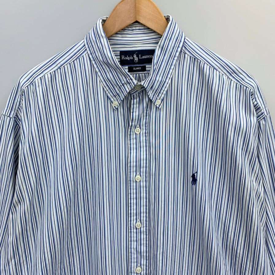 中古◆シャツ ラルフローレン 90S ストライプシャツ ブルー系 メンズ サイズL RALPH LAUREN 【AFB10】