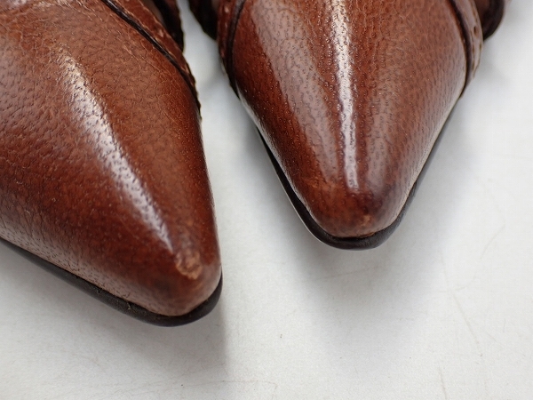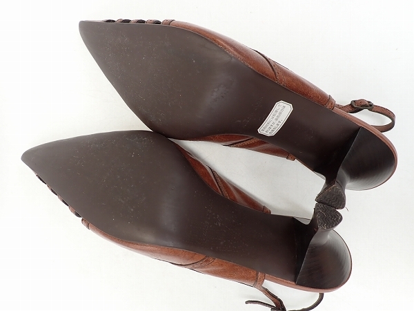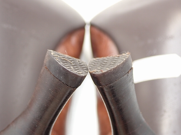 こちらの商品は中古品です。使用感は少ないです。インソールにキズやシミがあります。つま先に小さいキズがあります。ブランドロゴに剥げがあります。かかとソールの減りはみられません。 箱はありません。 ※アウトソールにポリウレタン素材が使われている靴は、使用の有無や頻度に関わらずソール内部で経年劣化が進行している可能性があります。その場合、着用時にソール全体が破損する恐れがあります。 また、アウトソール接着部分の剥がれ、インソールや内部側面素材の剥がれ、ストラップのゴムの劣化、ピンヒール素材の破損などの経年劣化も考えられます。 外観では判断のできない劣化ですので予めご理解の上ご入札下さい。 商品到着後1週間以内に数回の試し履きをお願い致します。試し履き後、商品に問題がある場合は対応させて頂きますので取引メッセージよりご連絡下さい。 | |