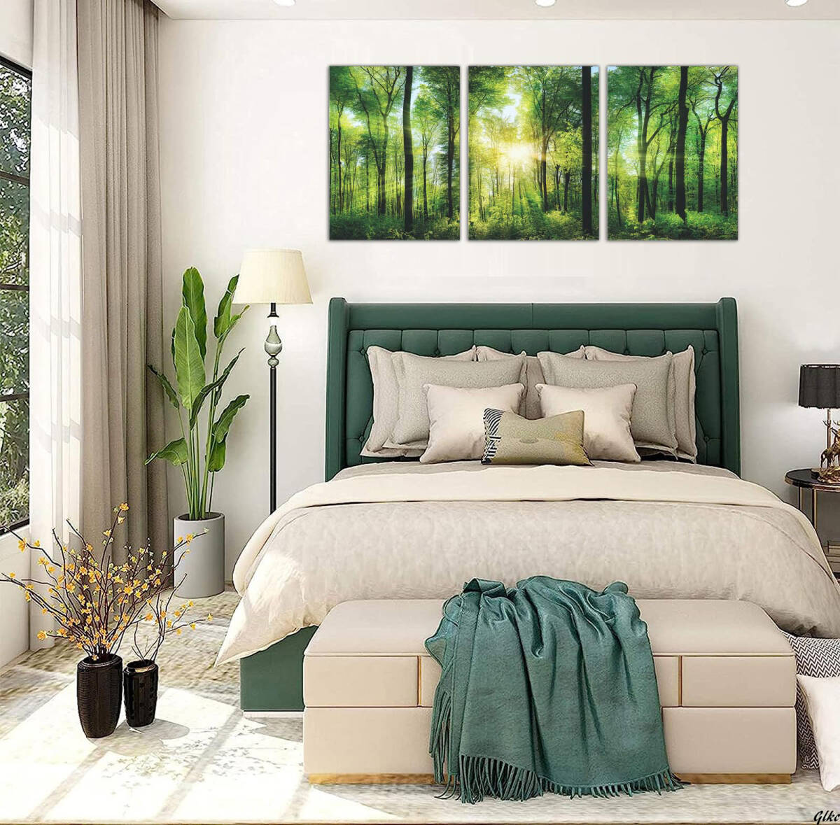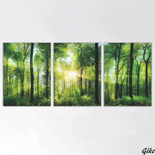 森林の風景を描いた3枚組のアートパネルが、あなたの空間に自然の癒しと調和をもたらします。
