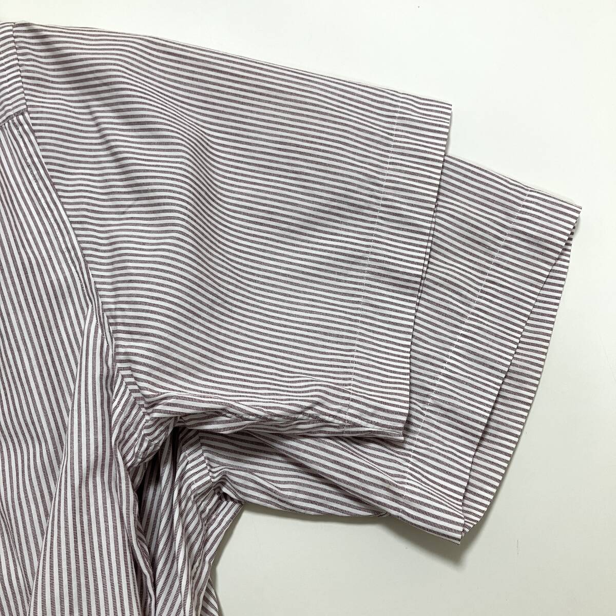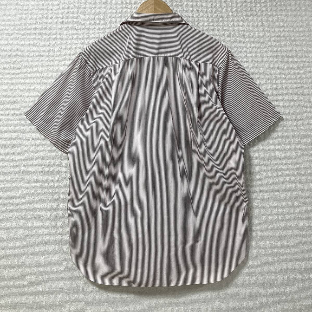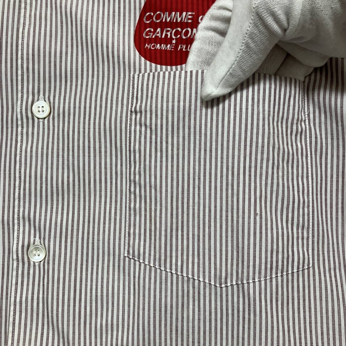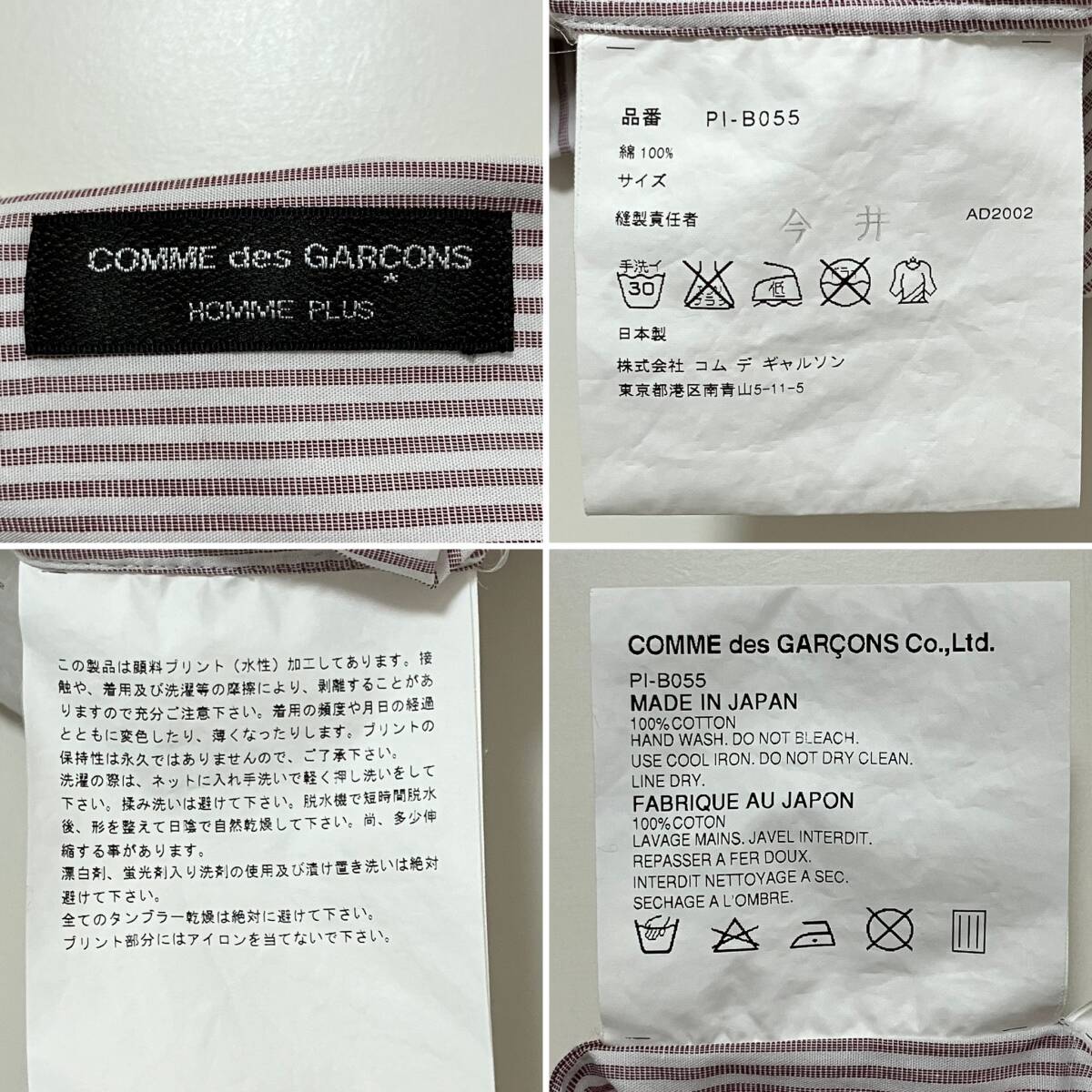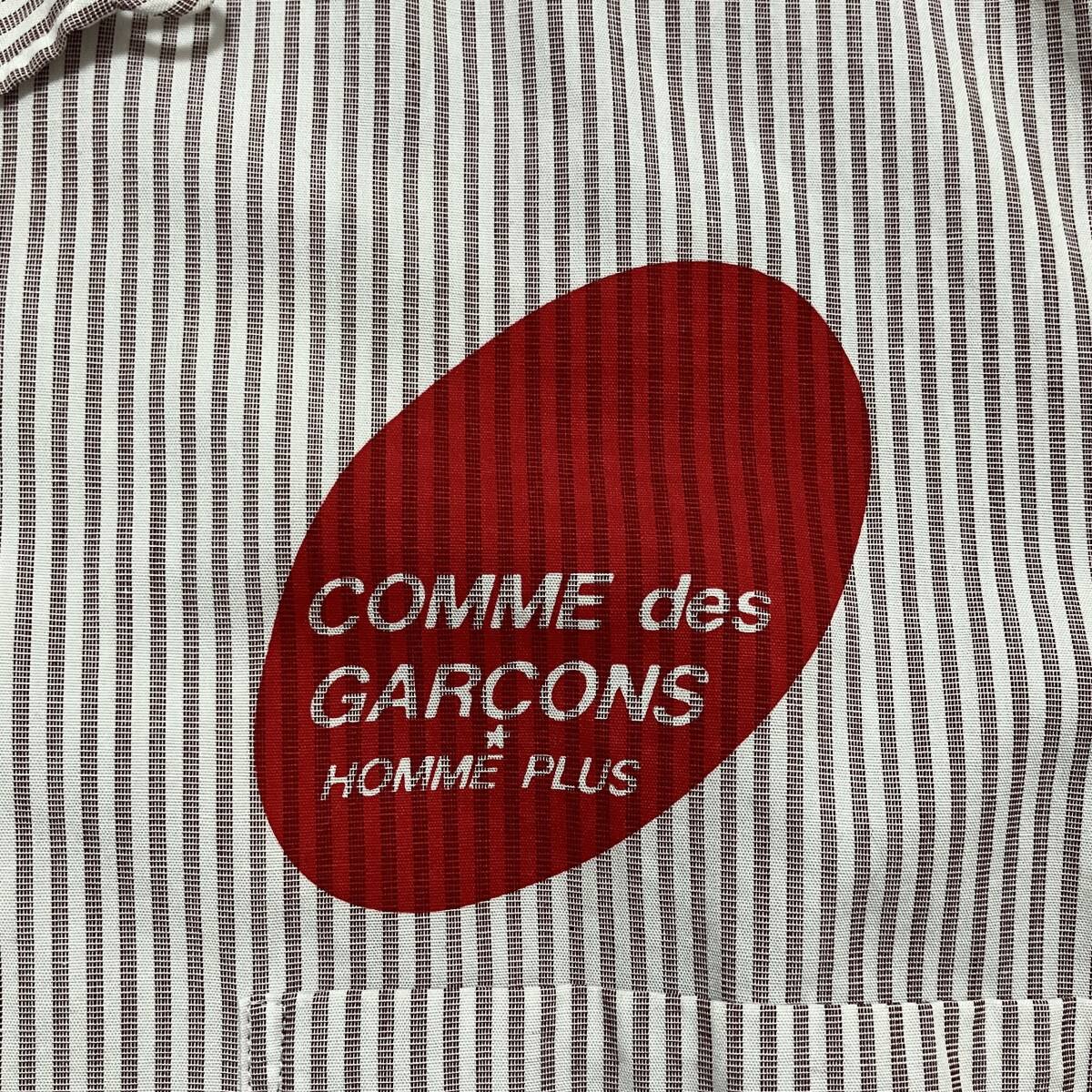 AD2002 COMME des GARCONS HOMME PLUS ストライプ 開襟 ロゴ 半袖 シャツ エンジ × ホワイト