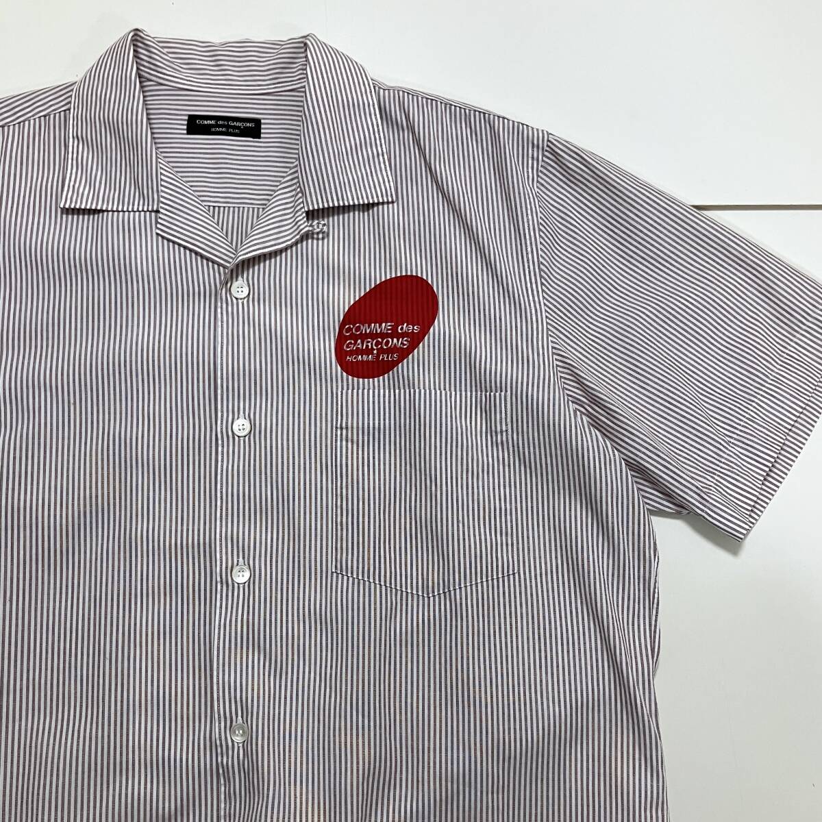 AD2002 コムデギャルソンオムプリュス ストライプ 開襟 ロゴ 半袖 シャツ HOMME PLUS オープンカラー VINTAGE archive archive 5050576