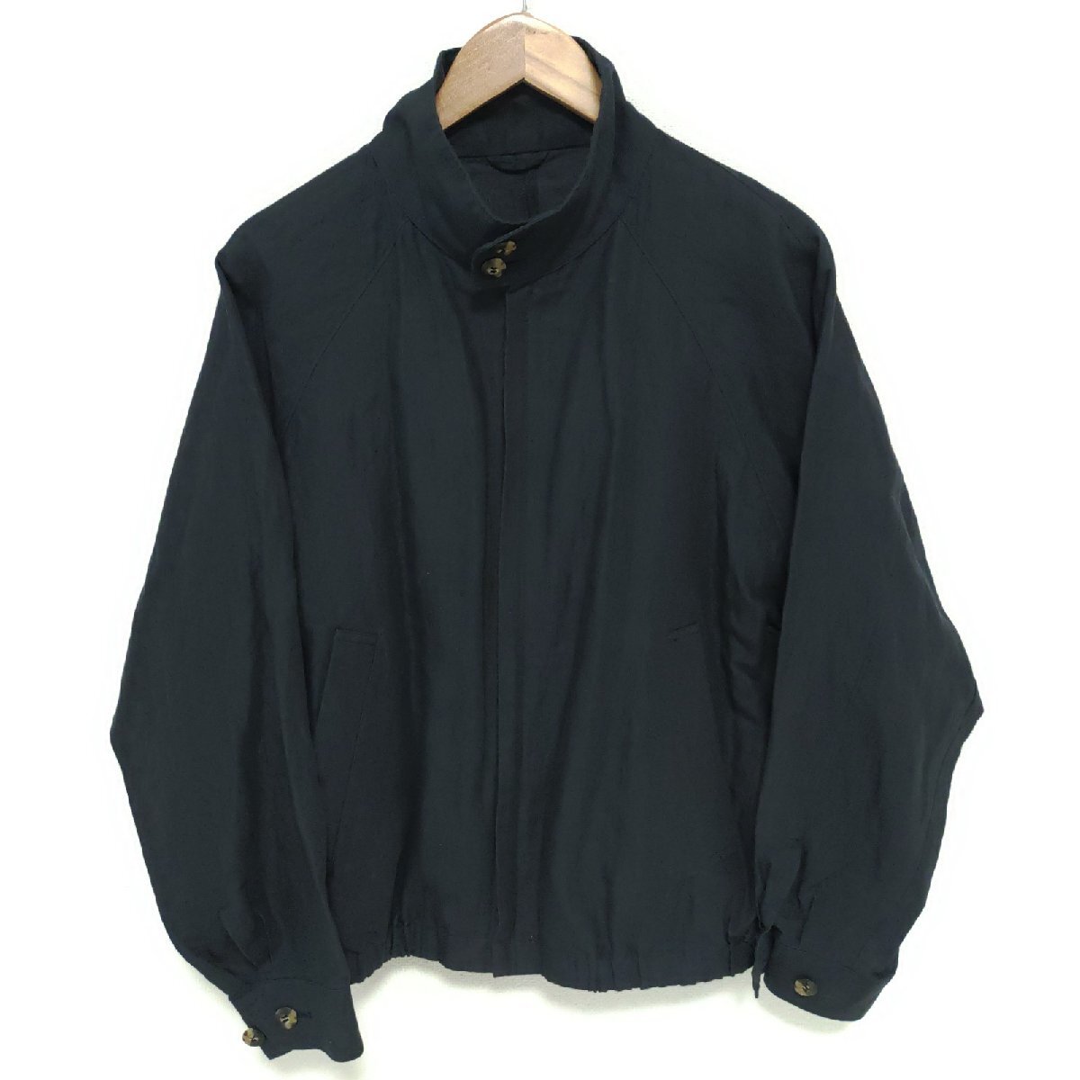 フロント両サイドにスラッシュポケットの付いた、ドックイヤータイプのスタンドカラーZIP開閉フルオープン仕様。肩回りが楽なラグランスリーブ。袖口はボタンで調整可能。裾はゴム入りで風の進入を防ぐ、安心感のある作り。 幅広いスタイルに合わせられるオーセンティックなデザイン で、 きれいめな印象を与えることができます。
