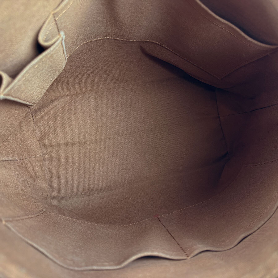 | ■商品状態 | 【外・レザー】焼け、スレ 【外・角、フチ】スレ、破れ 【外・ハンドル-ストラップ】焼け、スレ、ひび割れ 【金具部分】小キズ、退色 【内側】薄汚れ、スレ | ||