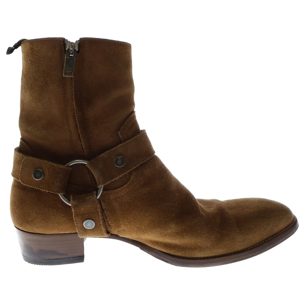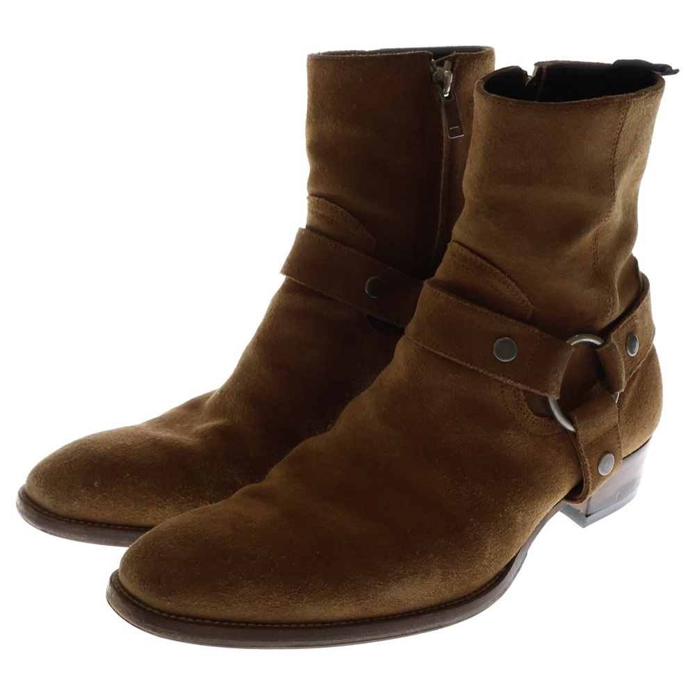 サンローランパリ クラシック ワイアット ハーネスショート リングブーツ ハイカットブーツ ブラウン 443190