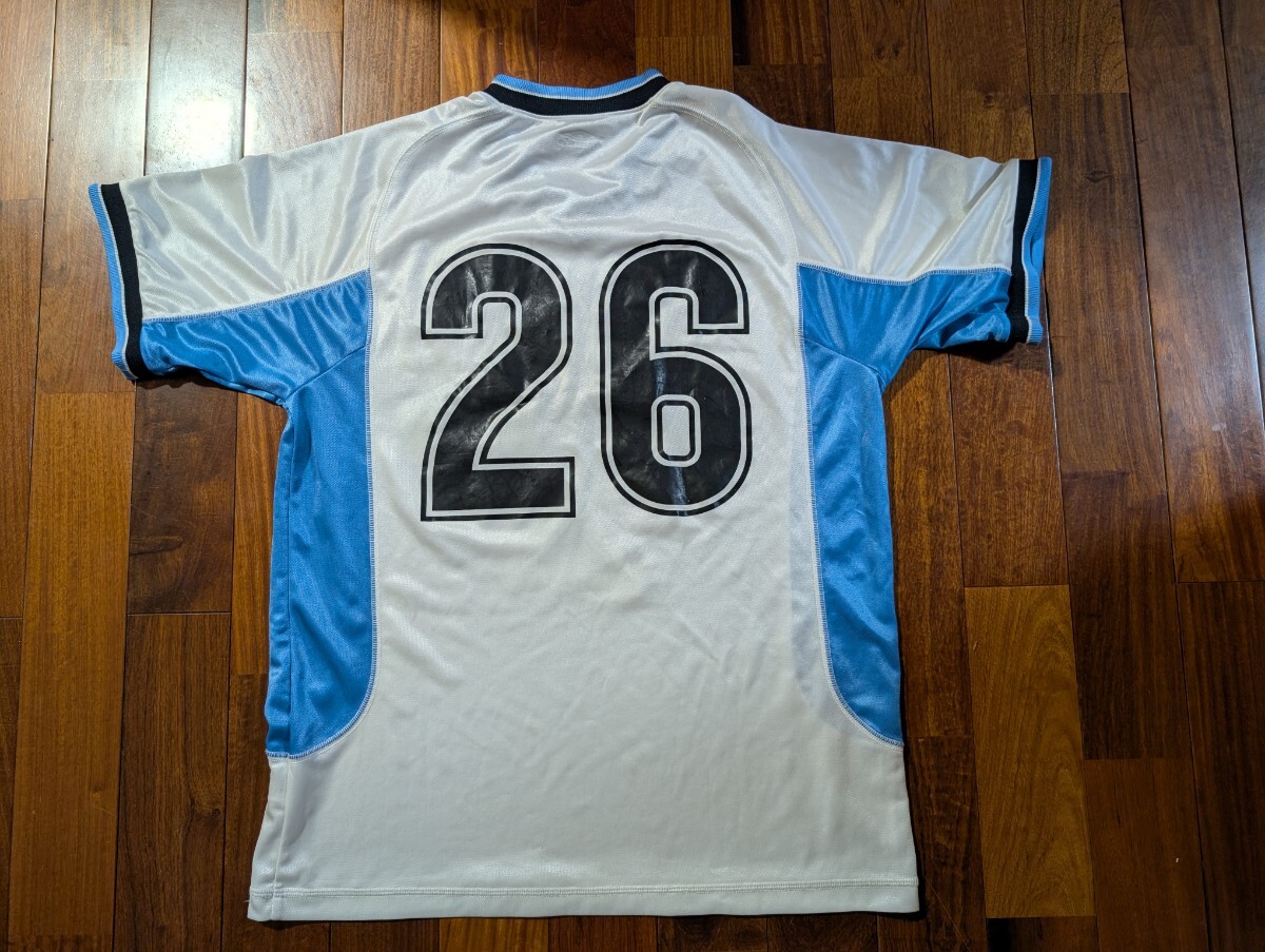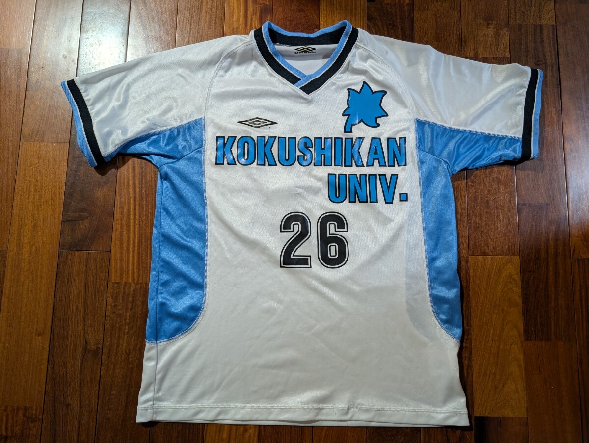 | 商品説明 | 国士館大学サッカー部の半袖ユニフォームの出品です。 背番号は26です。 カラーは、ホワイト×サックス×ブラックです。 標記サイズはM-Lです。 アンブロ製です。 ポリエステル100%素材です。 |