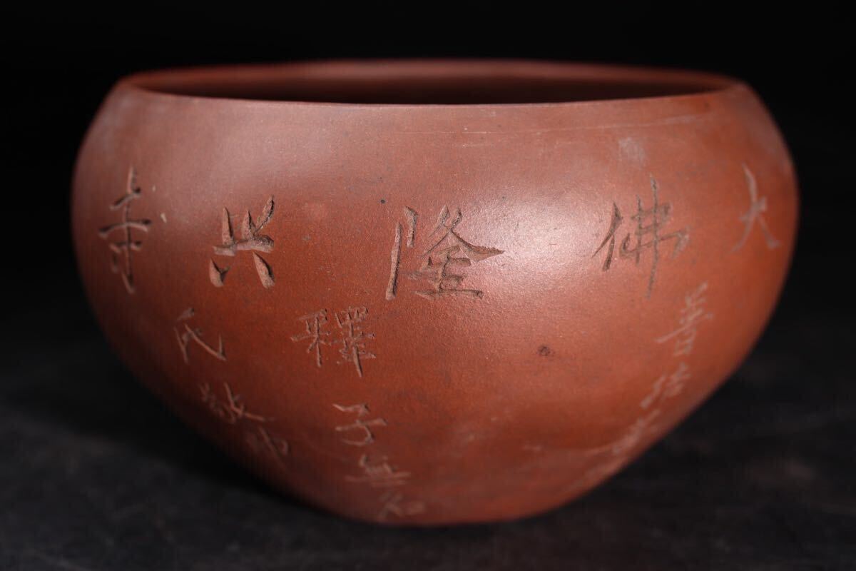 | 時代 朱泥 漢文 建水 / 中国美術 茶器 煎茶道具 煎茶飾 紫砂 紫泥 宜興紫砂 .G1937 |