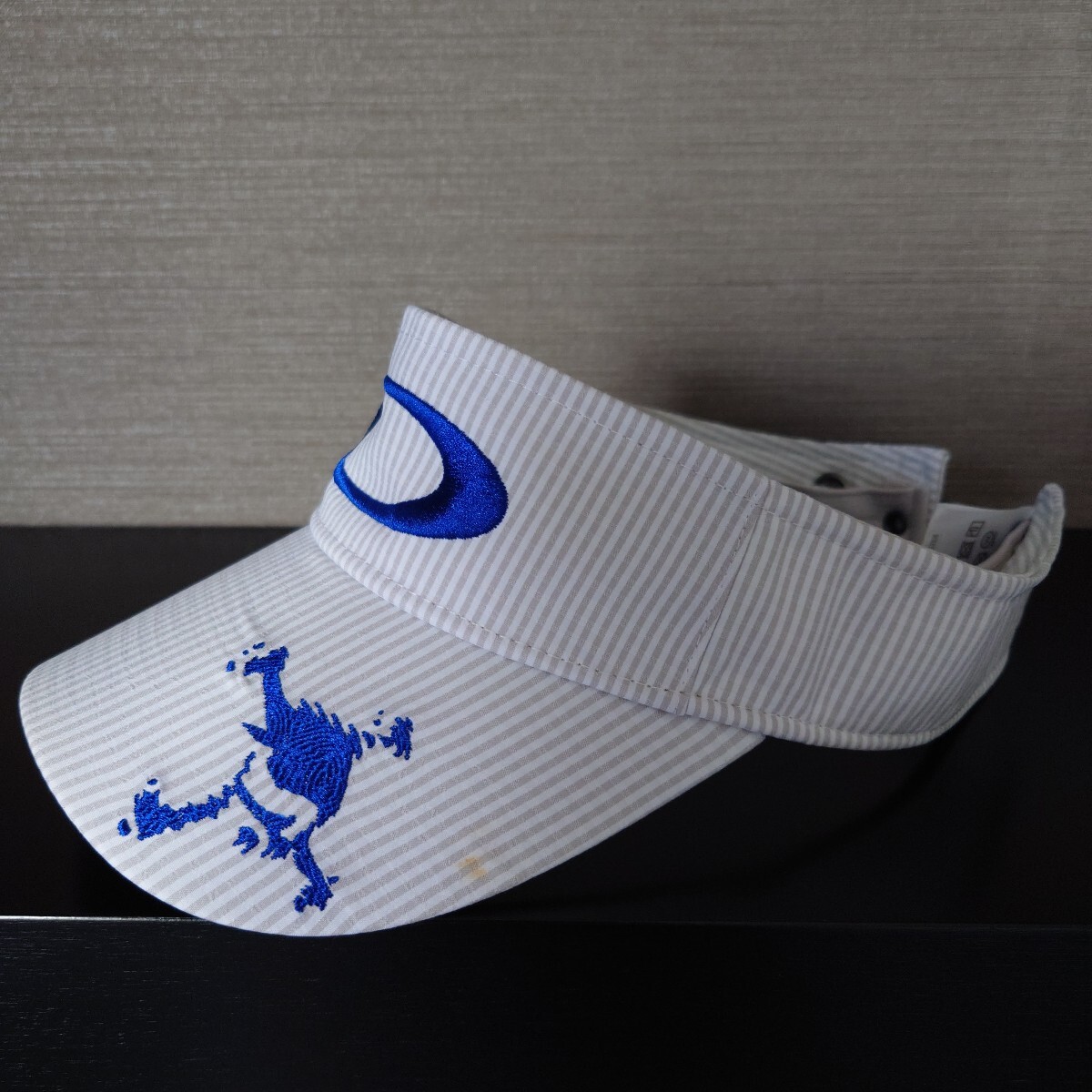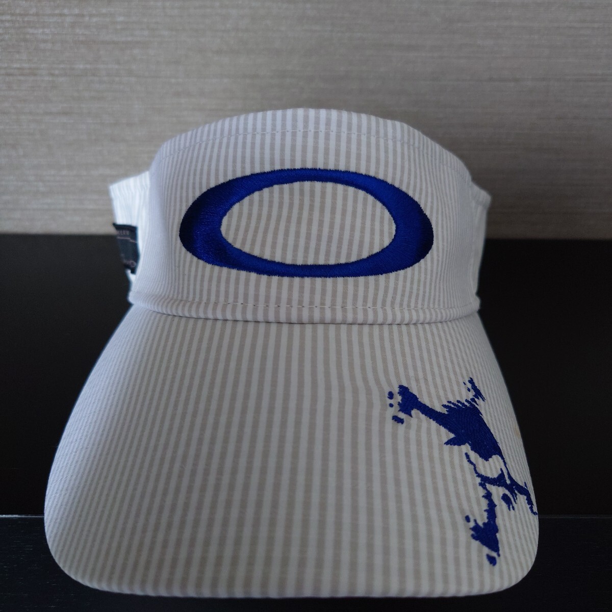 ■OAKLEY Skull オークリースカル ゴルフバイザー 白 ブルーストライプ