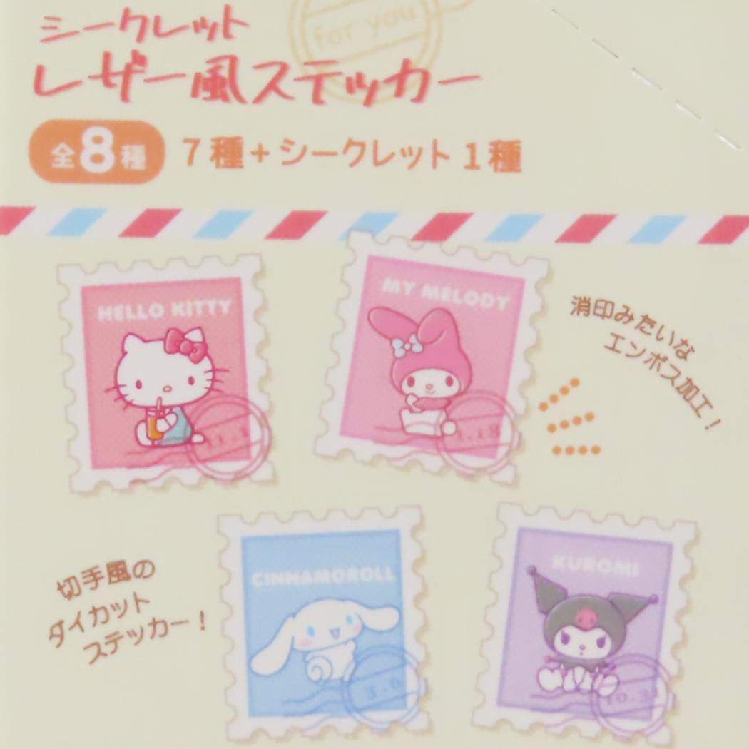 サンリオキャラクターズ ダイカットシール シークレットレザー風ステッカー 全8種 切手風 サンリオ ティーズファクトリー コレクシ