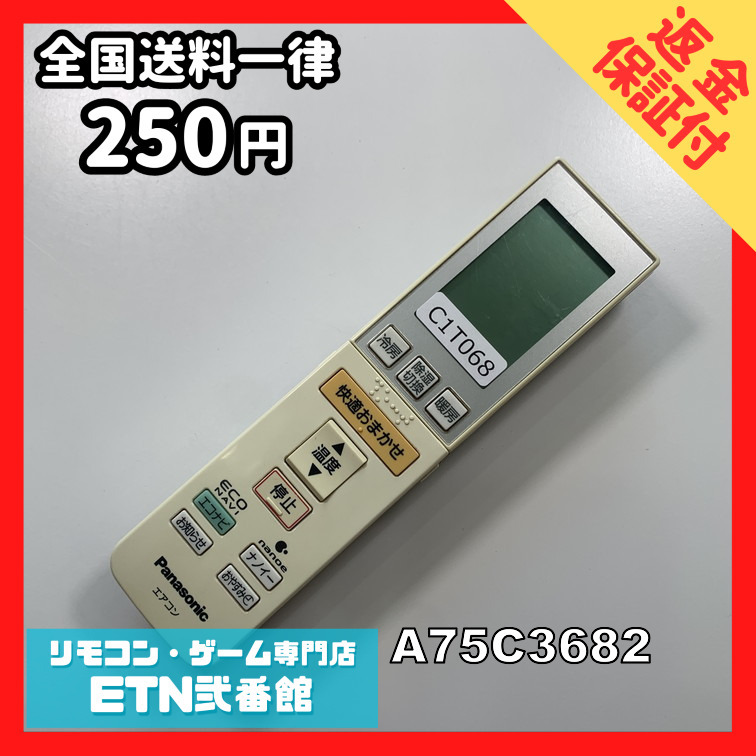 C1T068 【送料250円】エアコン リモコン / Panasonic パナソニック A75C3682 動作確認済み★即発送★ 冷房 暖房