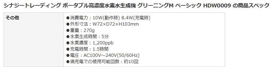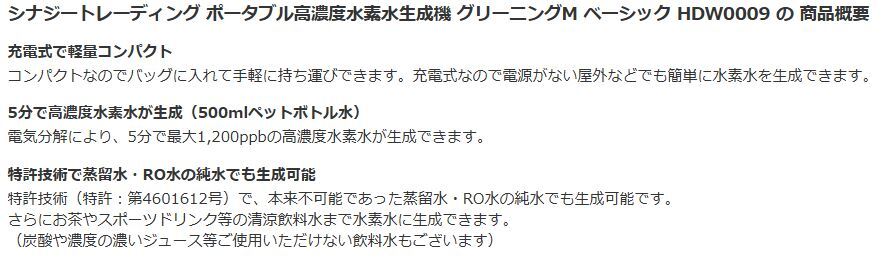 ◆送料無料◆新品◆シナジートレーディング◆ポータブル高濃度水素水生成機 グリーニング M ベーシック◆HDW0009◆即決◆