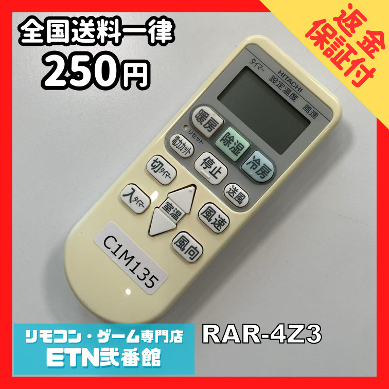 C1M135【送料250円】エアコン リモコン / 日立 ヒタチ HITACHI RAR-4Z3 動作確認済み★即発送★ * 冷房 暖房