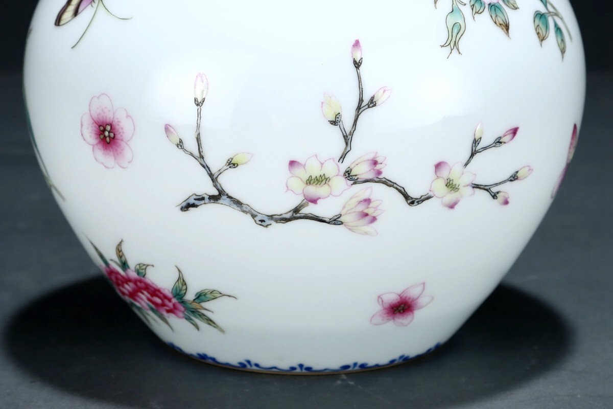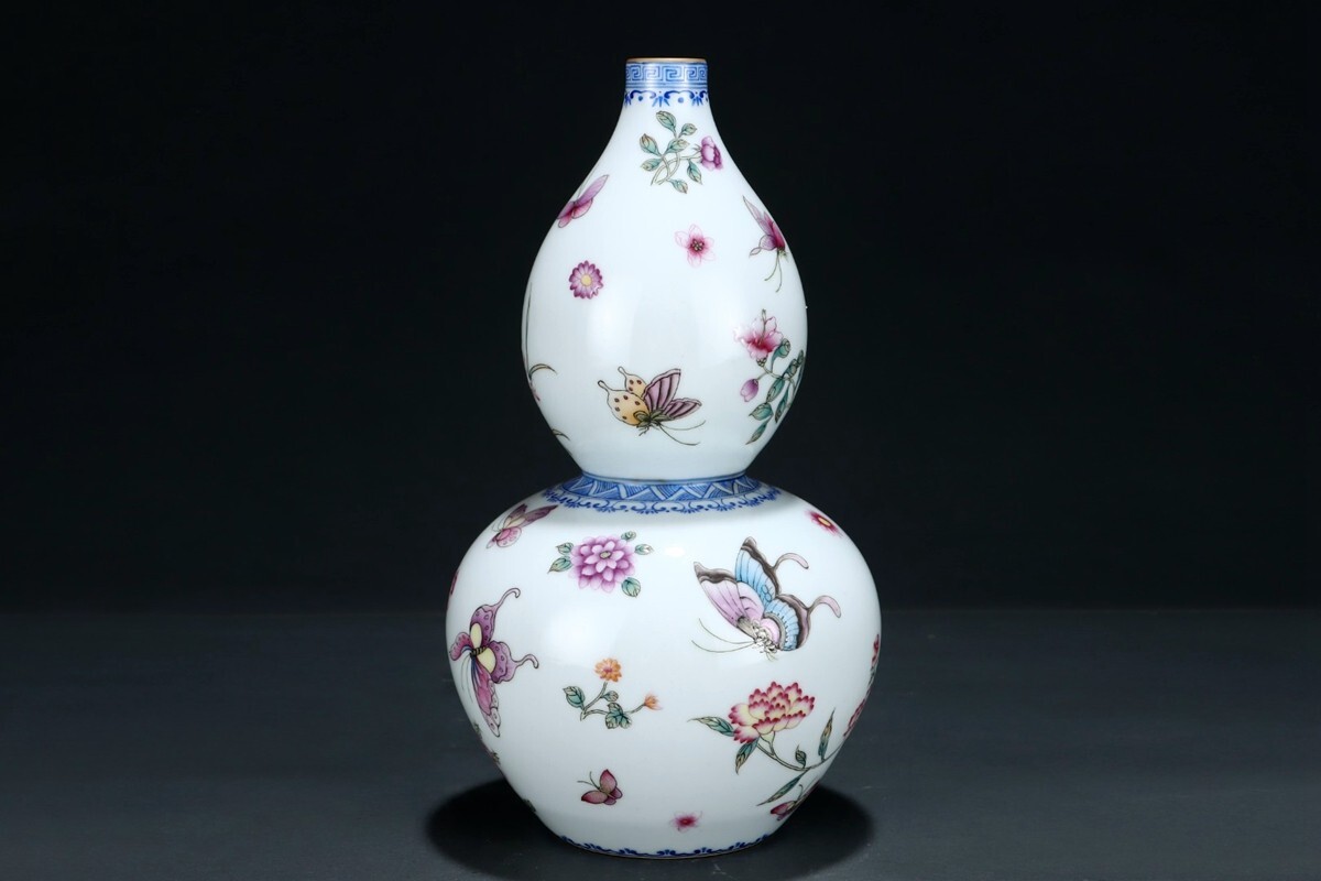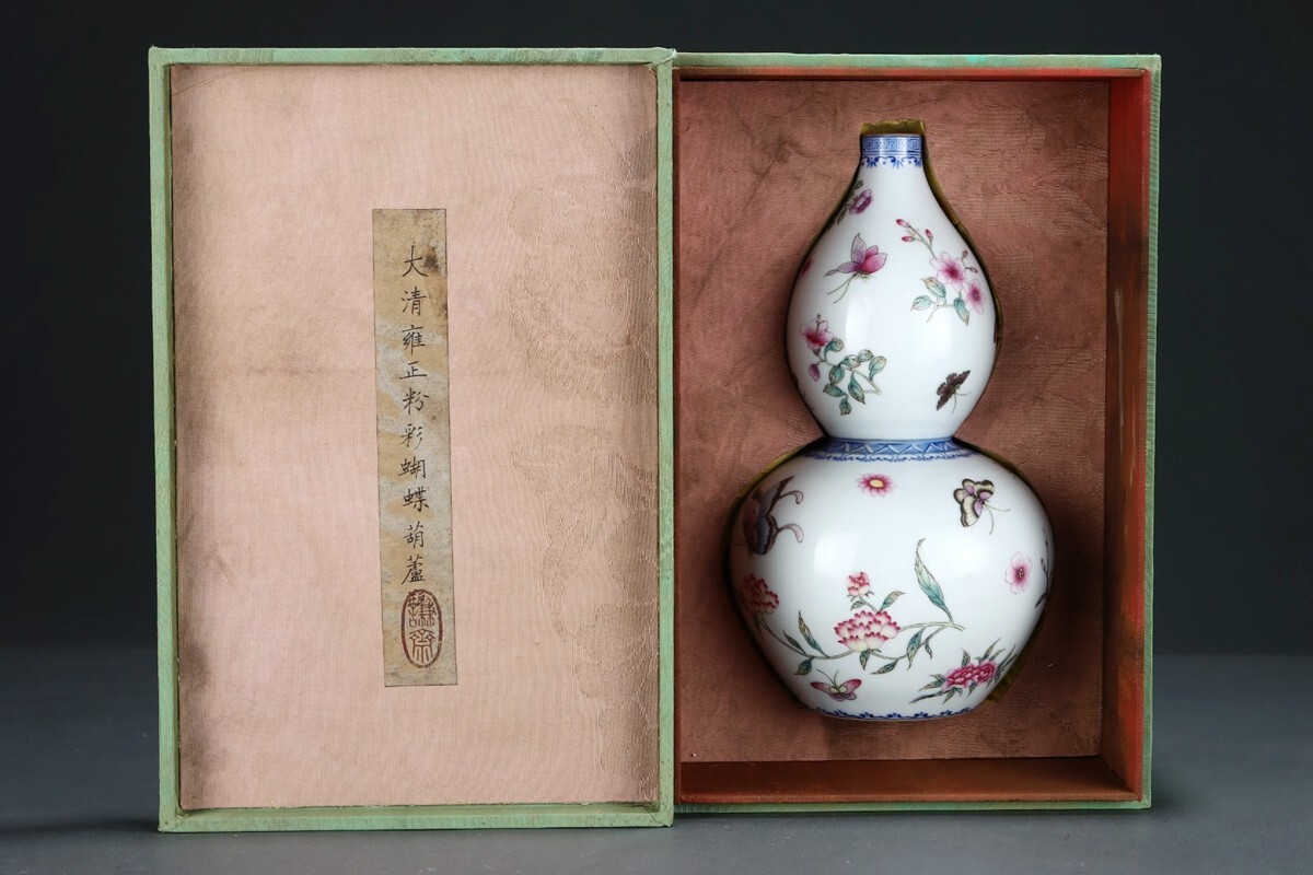 【瓏】陶磁器 粉彩蝴蝶紋 葫蘆瓶 清代 雍正御製 染付 置物擺件 古賞物 古美術 陶芸 蔵出
