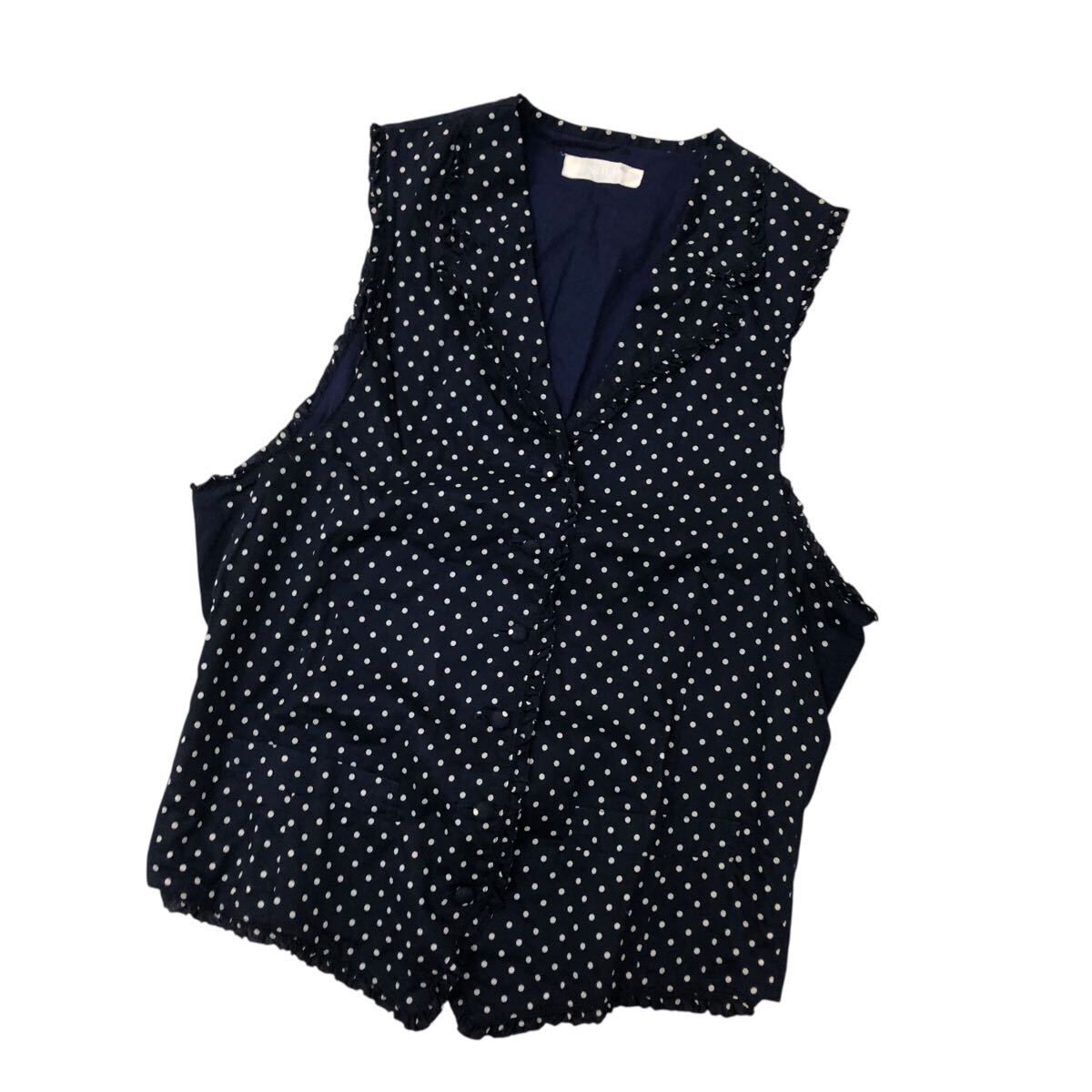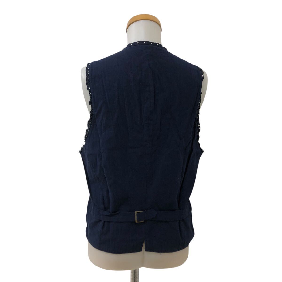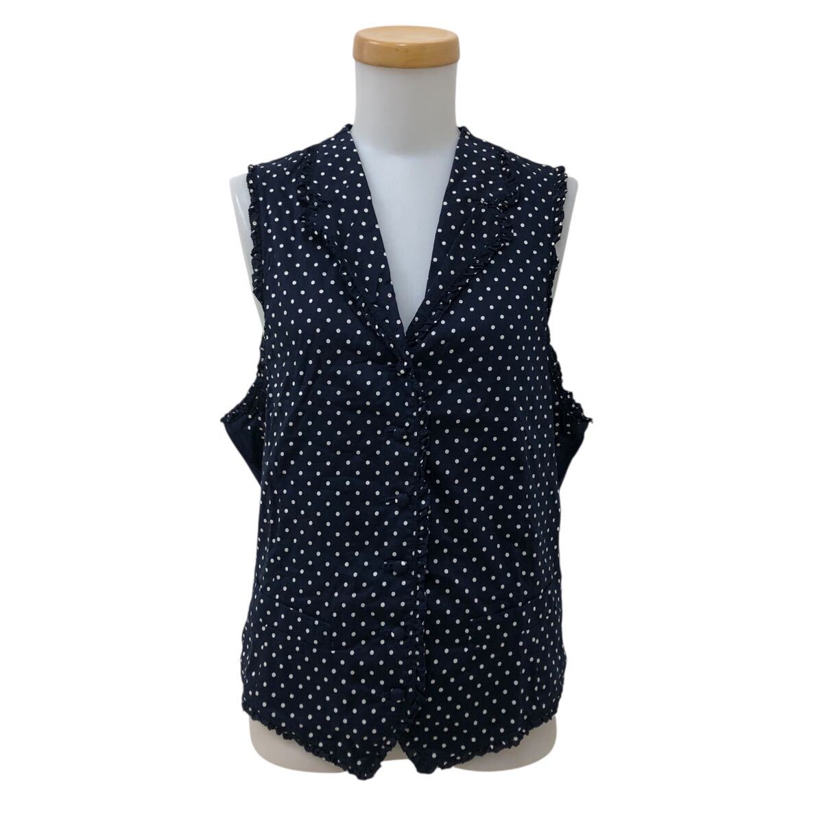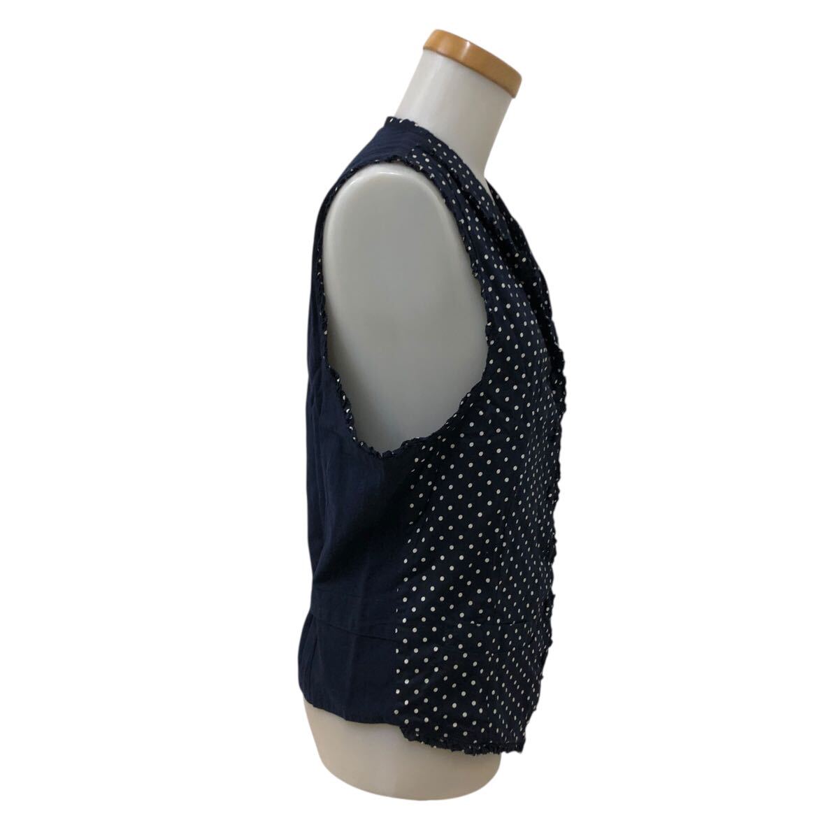 ND298-51 PINK HOUSE ピンクハウス ノースリーブ ベスト ジレ トップス 羽織り コットン 綿 100% ネイビー系 総柄 レディース 実寸参考