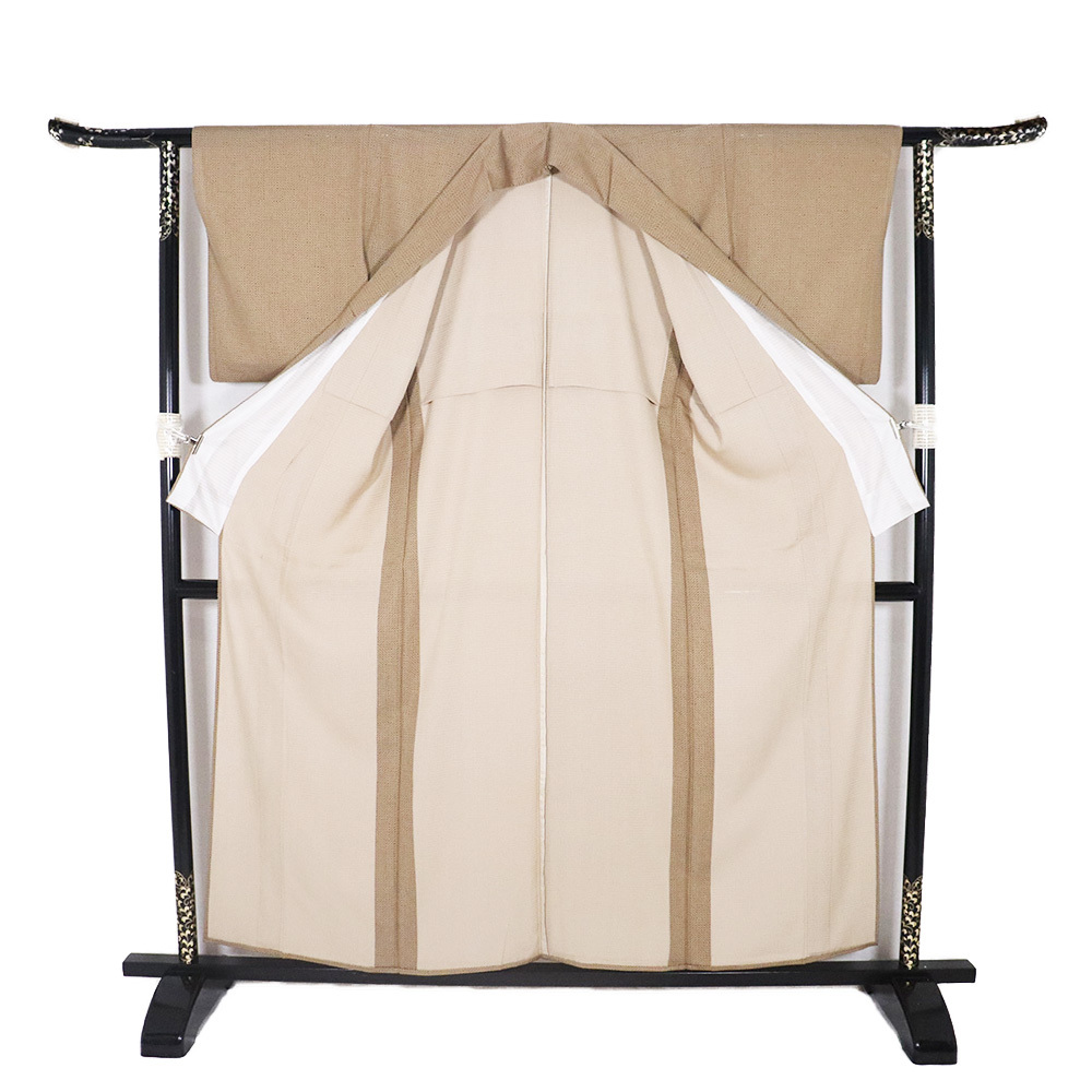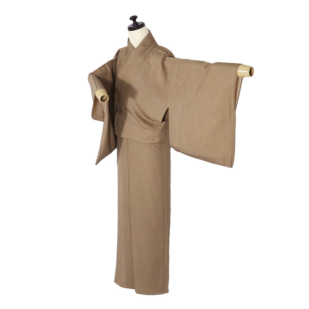 | コメント | 地色は和色大辞典よりお召茶色・榛色に 近いと思います。 カジュアルタイプから華やかなドレスアップタイプまで、 幅広く活用できるのが小紋の着物です。 柄の細かいシンプルなのや、小さい柄の飛び柄の小紋などは 、無地場が多いため、帯合わせもしやすく重宝します。 また着物全体に柄が連なっている総柄の小紋は、 ボリュームがあり豪華な雰囲気になります。 上品な着物の仕立てです。 生地の状態は良いと思います。 目立ったシミ汚れはないと思います。 美品です。 |