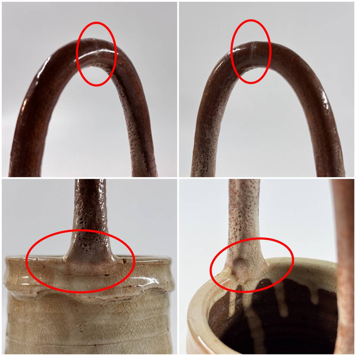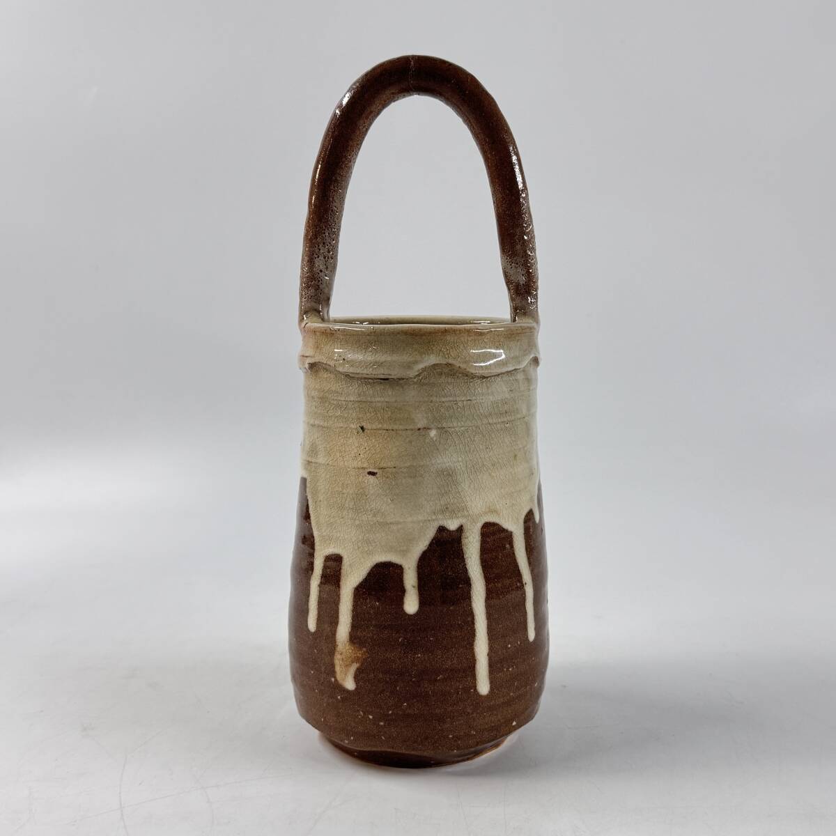萩焼 本窯 松林庵 玉村登陽 手提げ花瓶 難在り 華道具 茶道具 共箱 栞 経年保管品 現状品の出品です。
