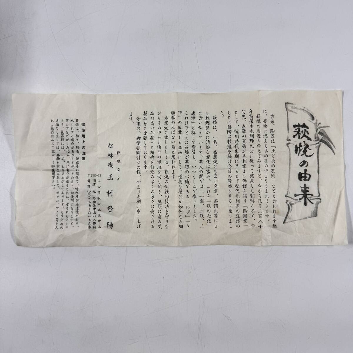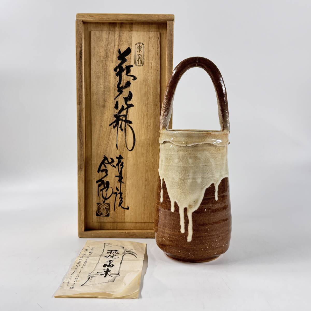 【63207Q】萩焼 本窯 松林庵 玉村登陽 手提げ花瓶 難在り 華道具 茶道具 共箱 栞 経年保管品 現状品