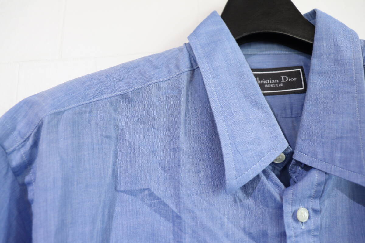 ・シャンブレー風のカジュアルな素材に、丁寧な作り込みが魅力的な、“Christian Dior monsieur”の半袖胸ポケットト付シャツです。