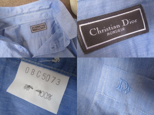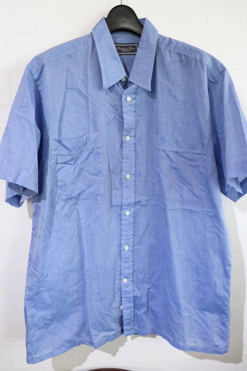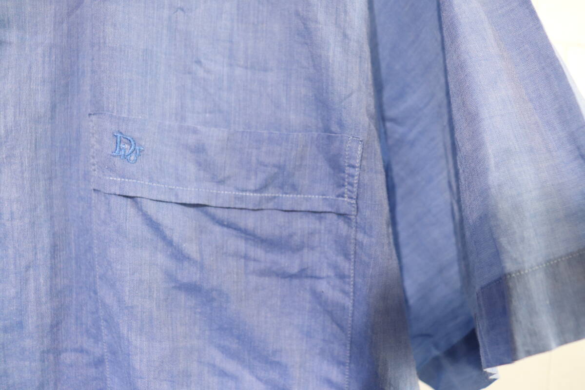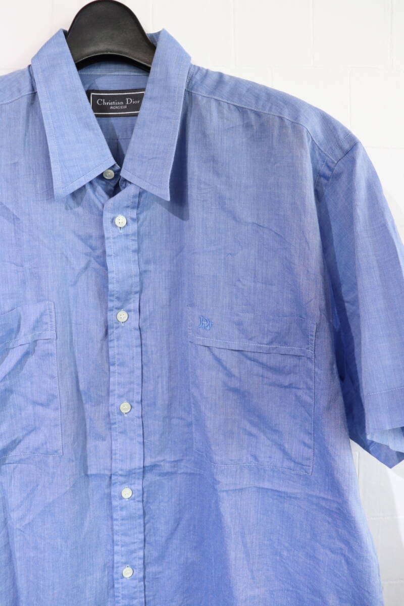 『送料レターパック対応可能   Christian Dior monsieur   名作   ダブルポケット半袖胸刺繍シャツ   L位   ブルー系』