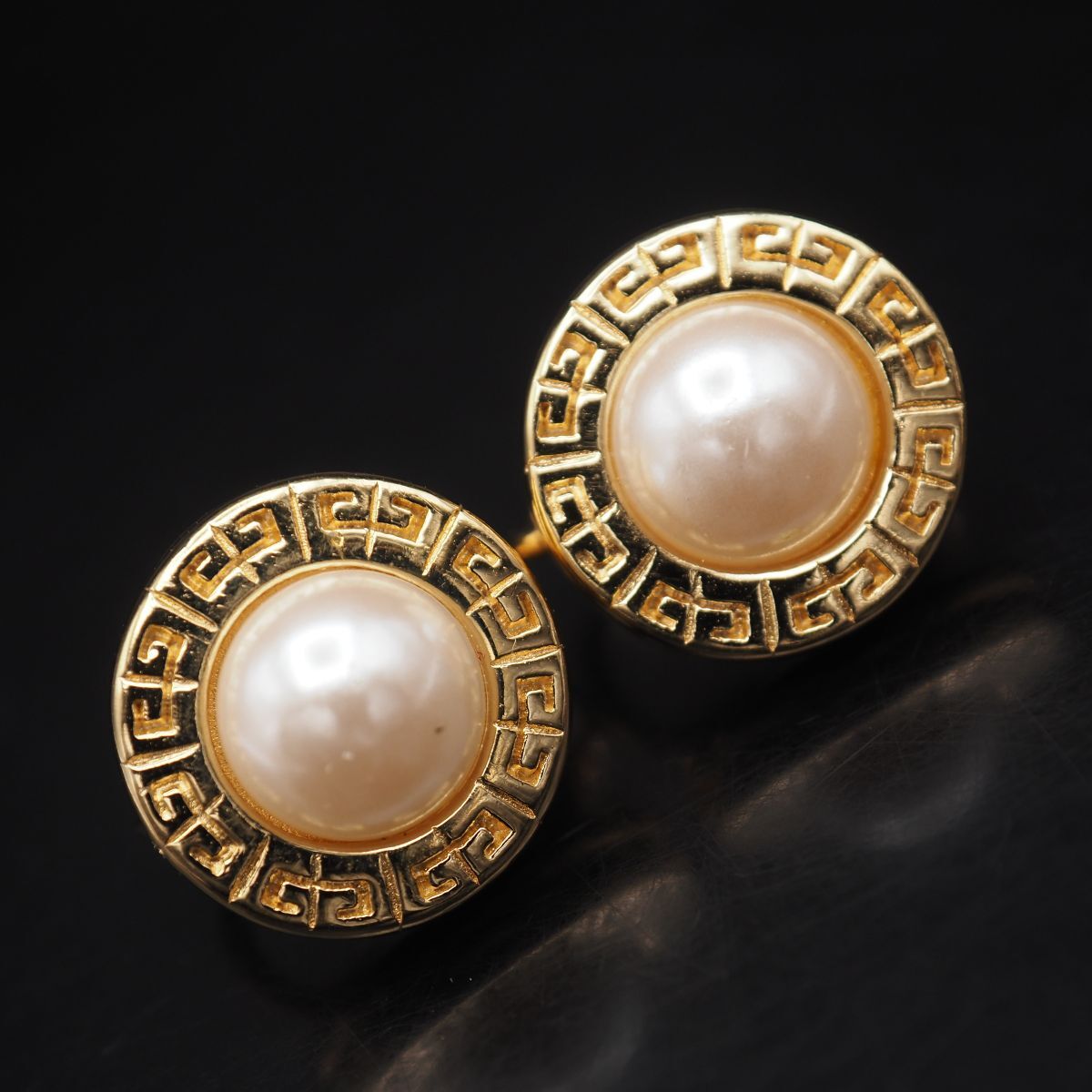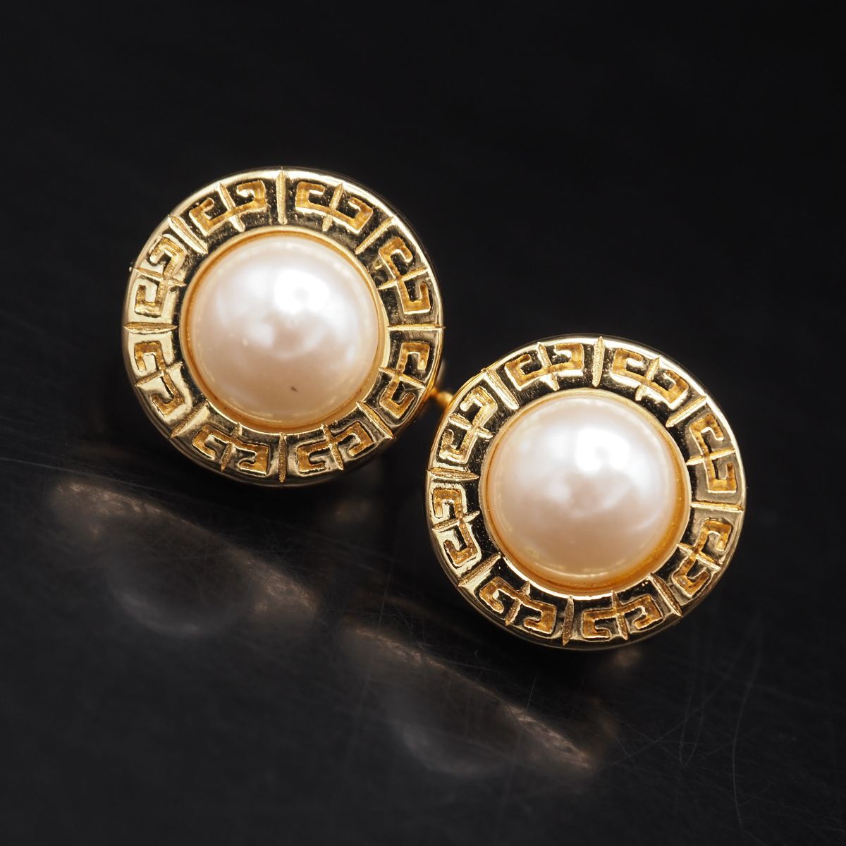 B014 ジバンシイ GIVENCHY PARIS NEW YORK イヤリング フェイクパール ロゴ ゴールド デザイン