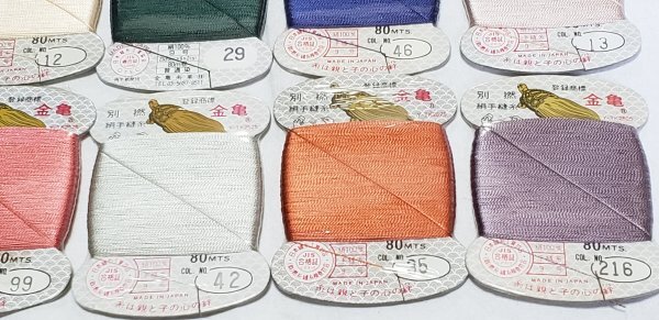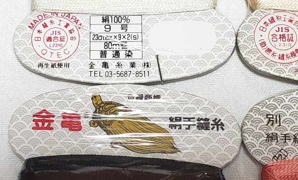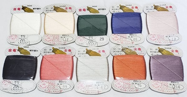 金亀 別撚 絹手縫糸 9号 80m 10点セットです。