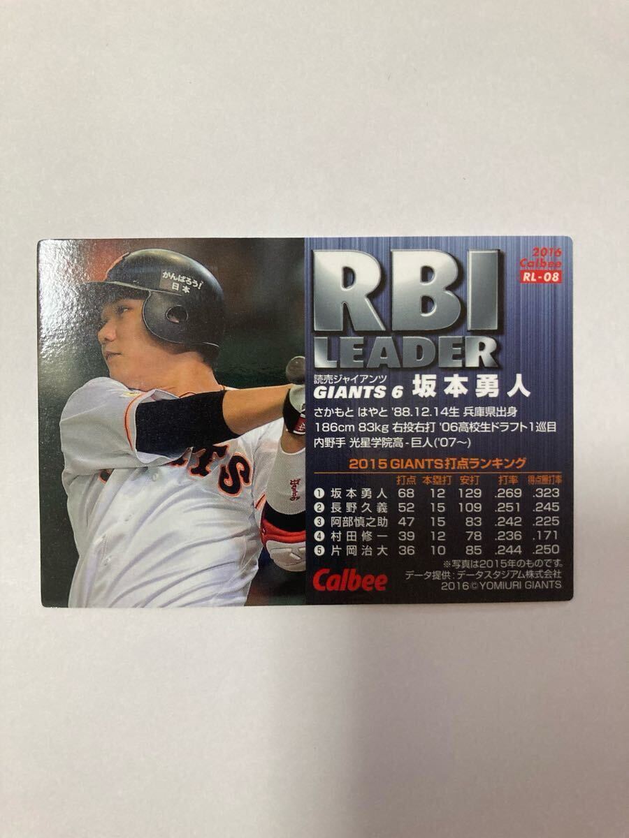 カルビー2016年 RL-08 坂本勇人(巨人) 通販限定カード