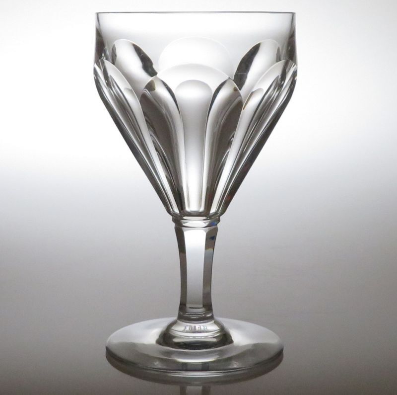 ボウル、ステムどちらもすべて平らなハンドカット(フラットカット)のみで構成された大変個性のあるグラスで、なかなか見つからないものです。