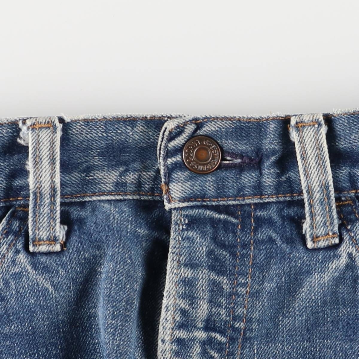 | 着用感: レディースL(w29) 表記サイズ: 不明 ウエスト: 75cm 股上: 25.5cm 股下: 9cm 裾周り: 51cm ヒップ: 89cm ![]() | ![]() ランク:C USEDデニムですので使用感、擦れ、色落ちなどございますが、まだまだご愛用していただけます。 古着という事をご理解の上ご注文よろしくお願いします。 【状態追記】 ●両裾カットオフ ●前、両下腹部・前立て・両腿に汚れ ●後、両ヒップ・左腿に汚れ 両ヒップに擦れ ●内側、股下に汚れ |
