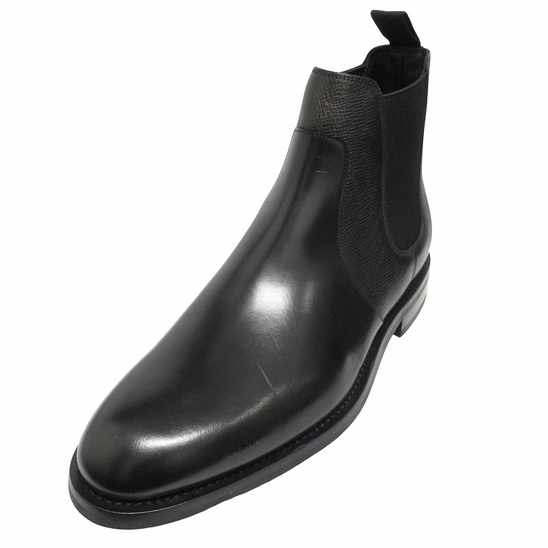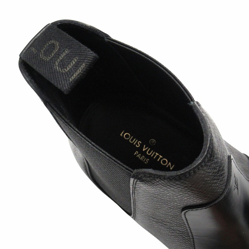 未使用品 ルイヴィトン タイガ 切替 レザー チェルシー ブーツ サイドゴア LVロゴ シューズ 革靴 ショートブーツ 5 黒 メンズ ▽2