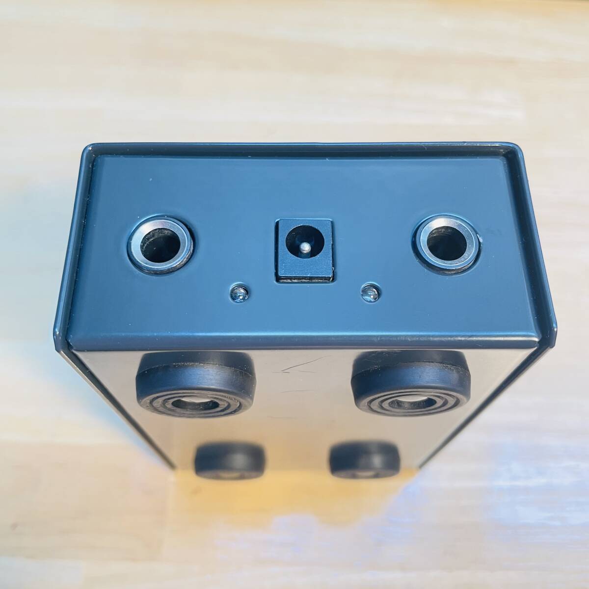 元箱および英語マニュアルが付属します。電源アダプターは付属しませんが、一般的なギターペダルなどと同じ、9Vセンターマイナス200mAのDCアダプターをご使用ください。