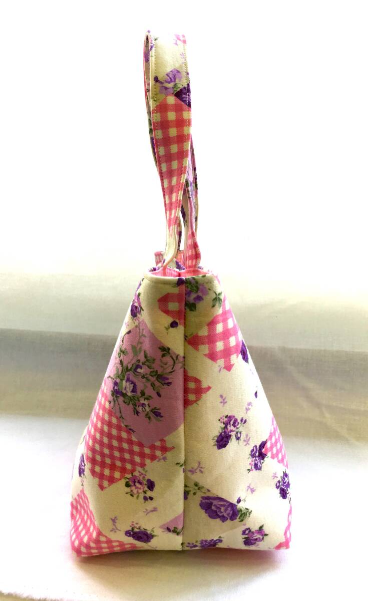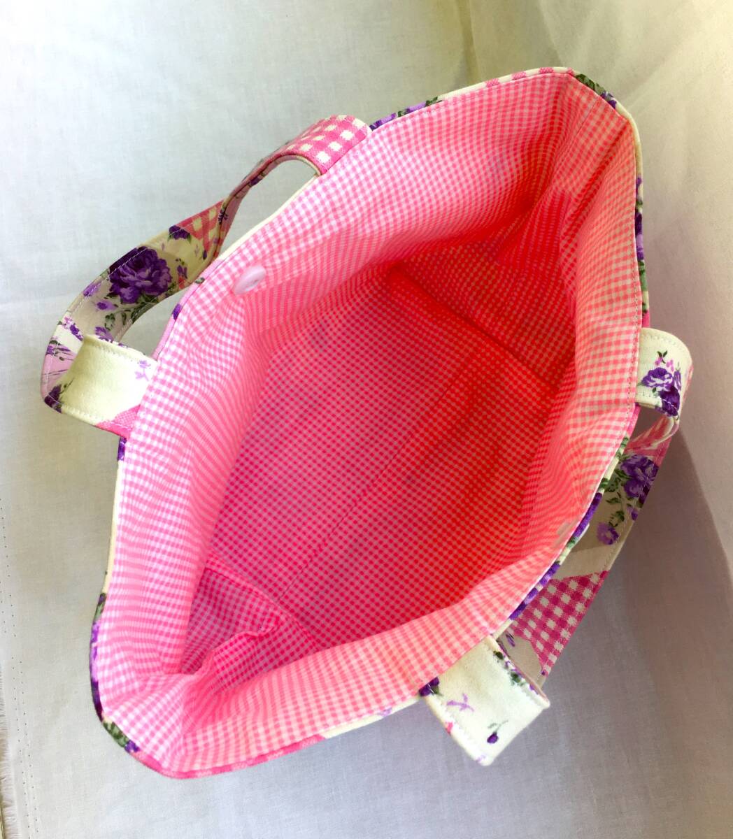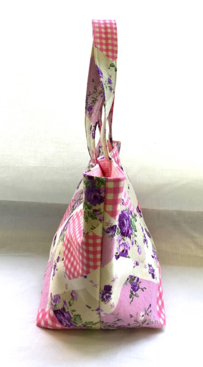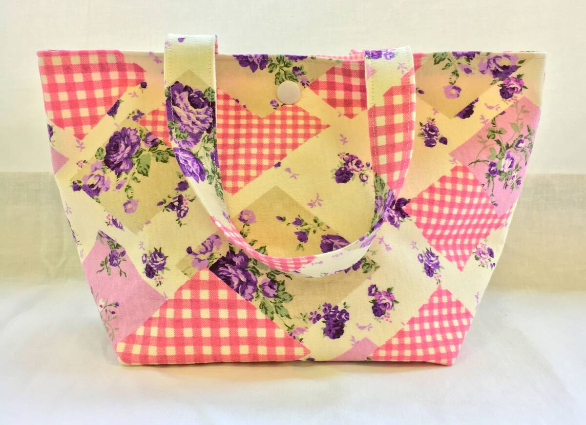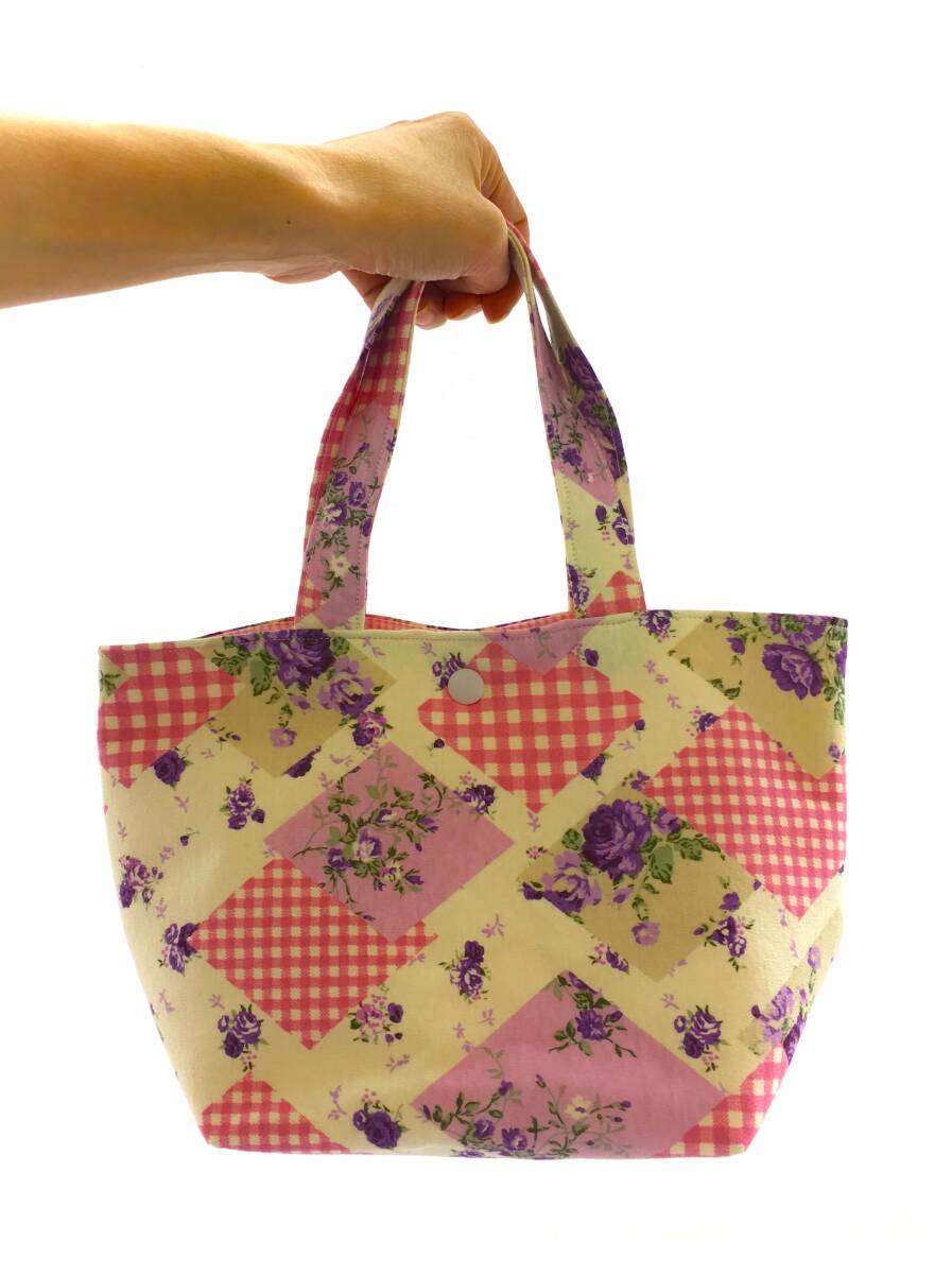 トートバッグ ハンドメイド ランチトート お弁当入れ 花柄 フラワー 小さめ ミニサイズ ピンク パープル 紫 マチ付き 可愛い 手芸作品 F200