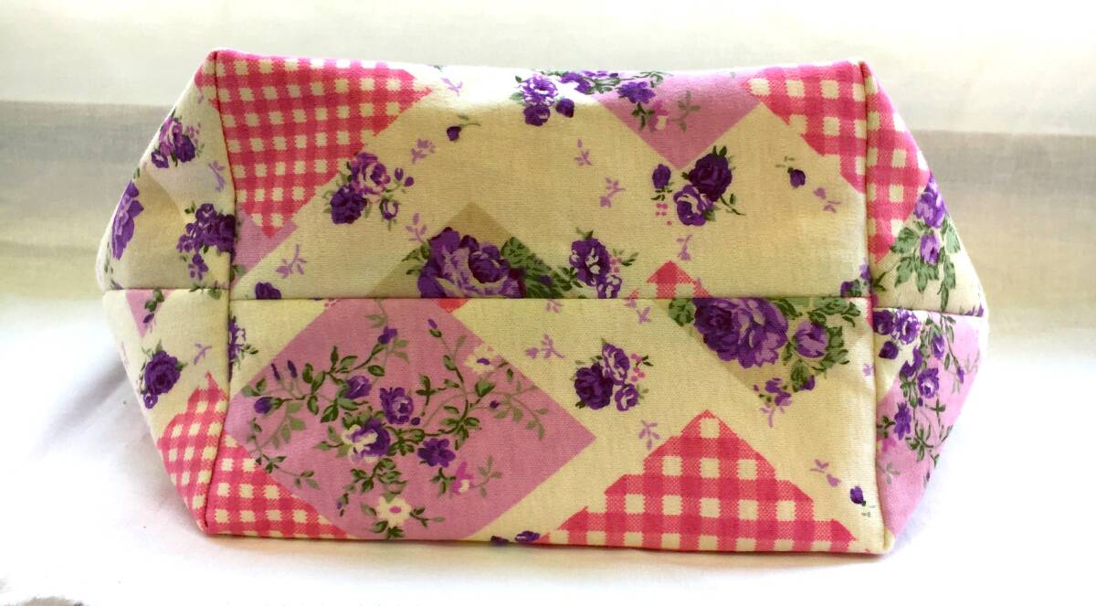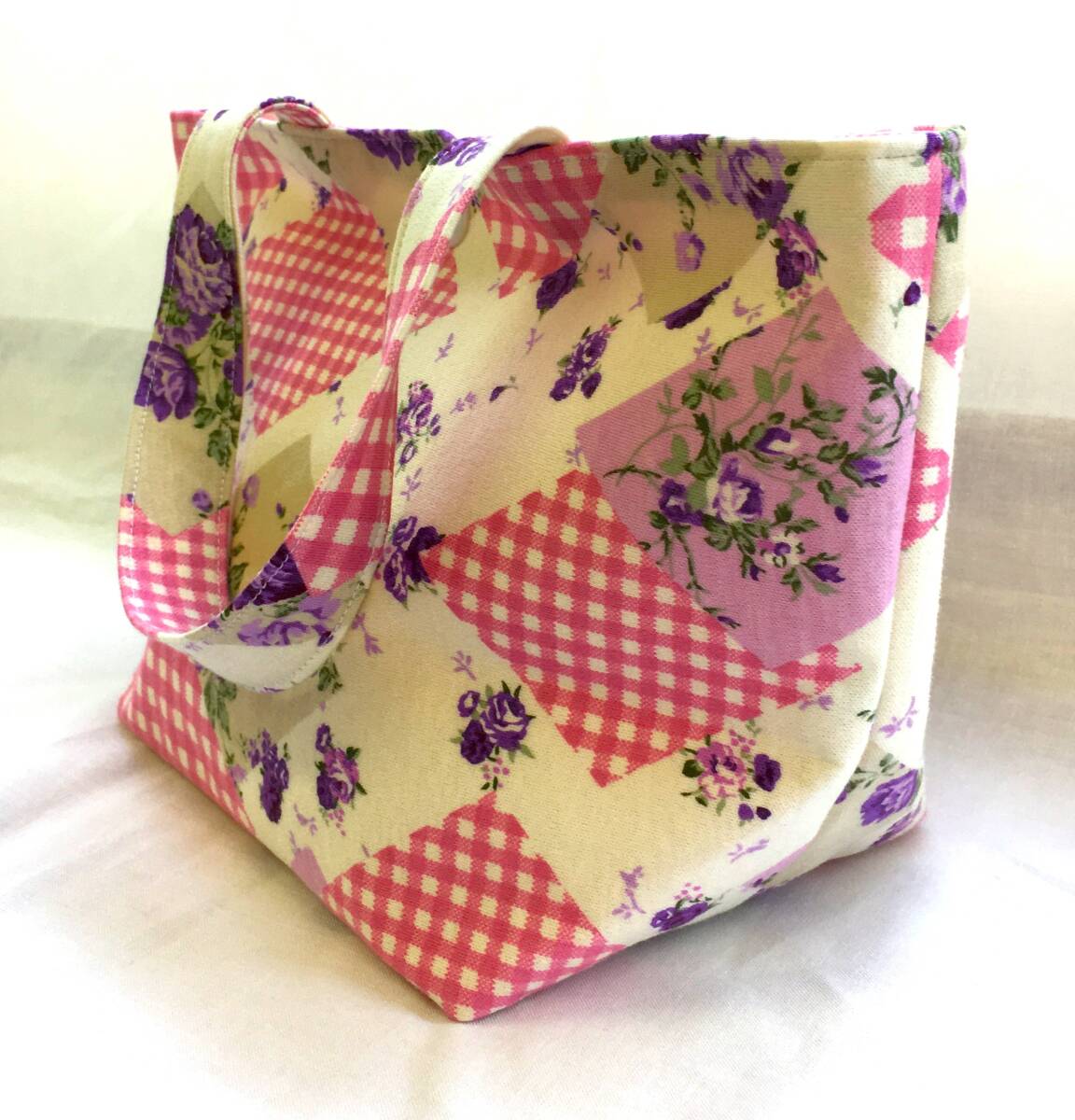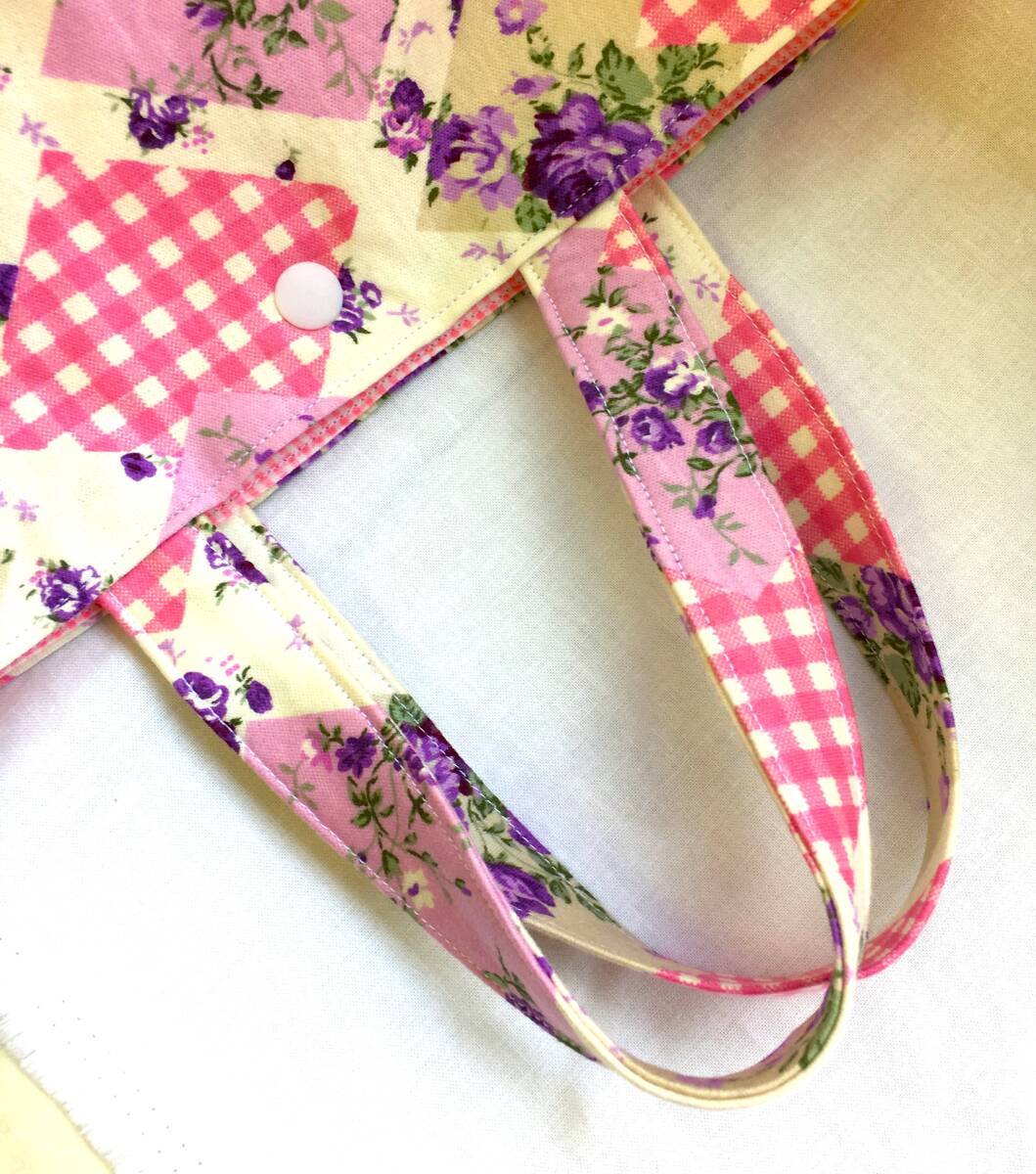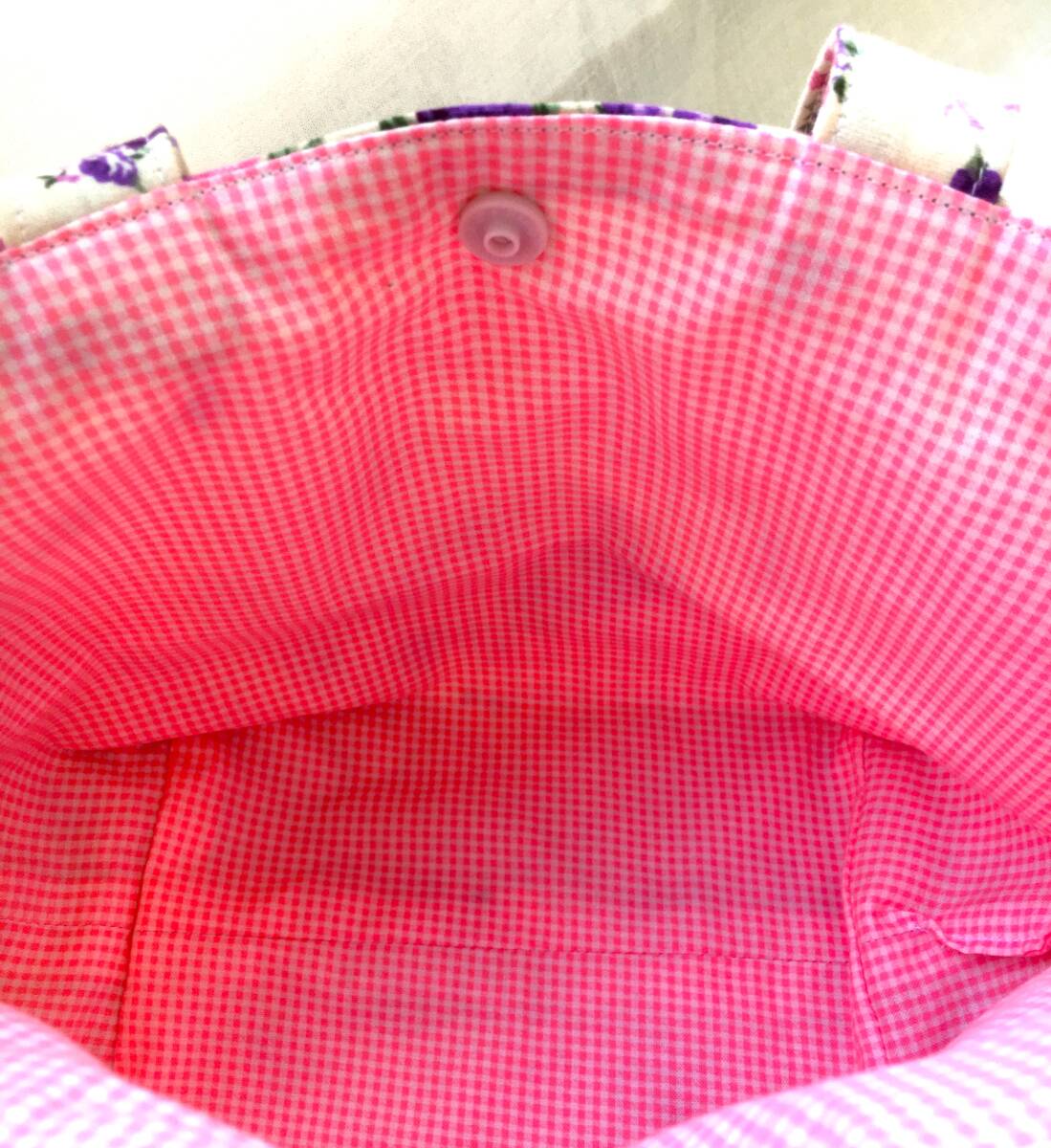 トートバッグ ハンドメイド ランチトート お弁当入れ 花柄 フラワー 小さめ ミニサイズ ピンク パープル 紫 マチ付き 可愛い 手芸作品 F200