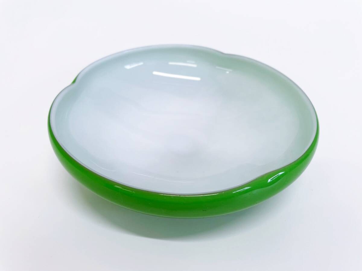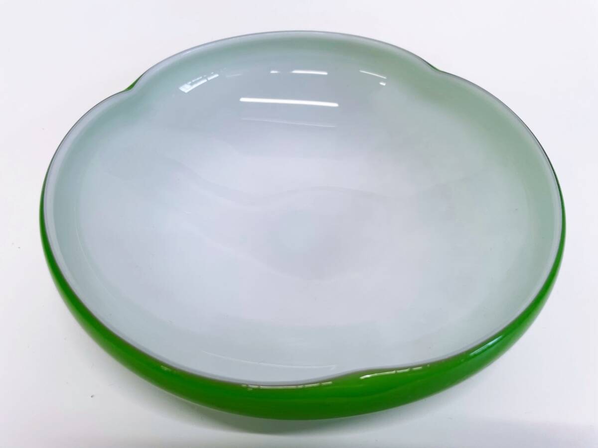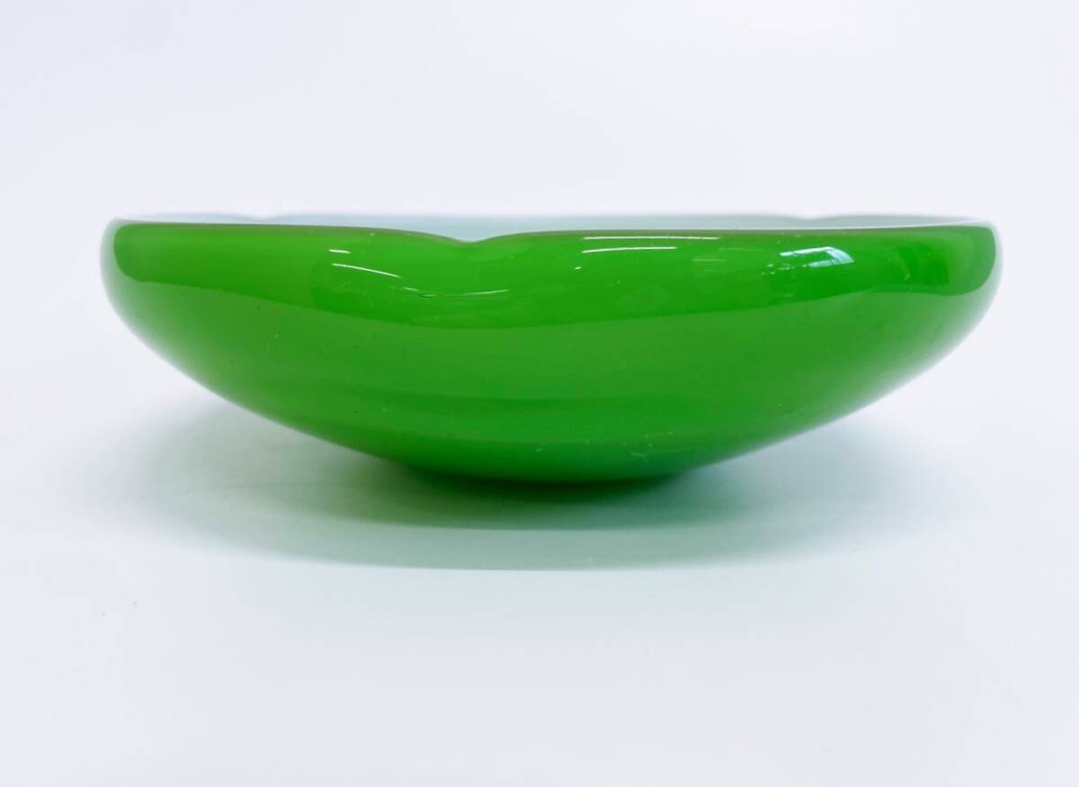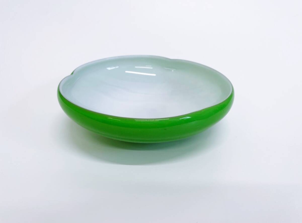 #レトロガラスボウル グリーン ガラス鉢 菓子皿 料理皿 ガラスボウル サラダボウル アンティーク 昭和レトロ