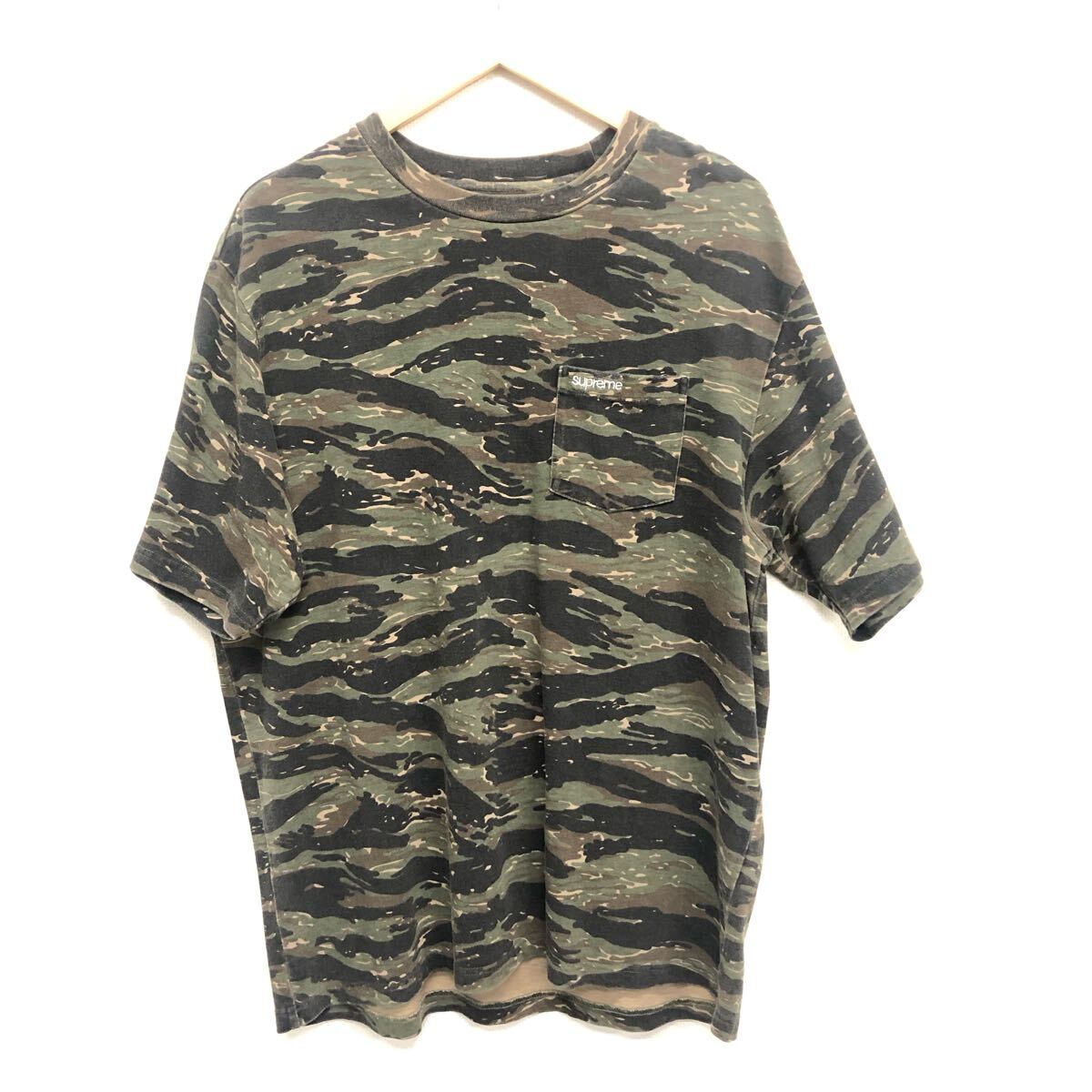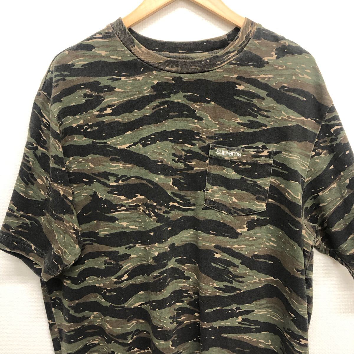 【supreme】シュプリーム★ Tシャツ サイズL コットン カーキ カモフラ Pocket Tee Tiger Camo MST